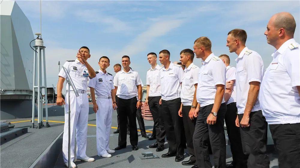 虾仁猪心!中俄海军官兵在上海吴淞军港相互登舰参观对方军舰,俄罗斯海军来的是2艘满排2000吨的20380型护卫舰,而中国海军派出让俄海军登舰参观的则是一艘7000吨级的052D驱逐舰,并且是一艘“盾舰”。