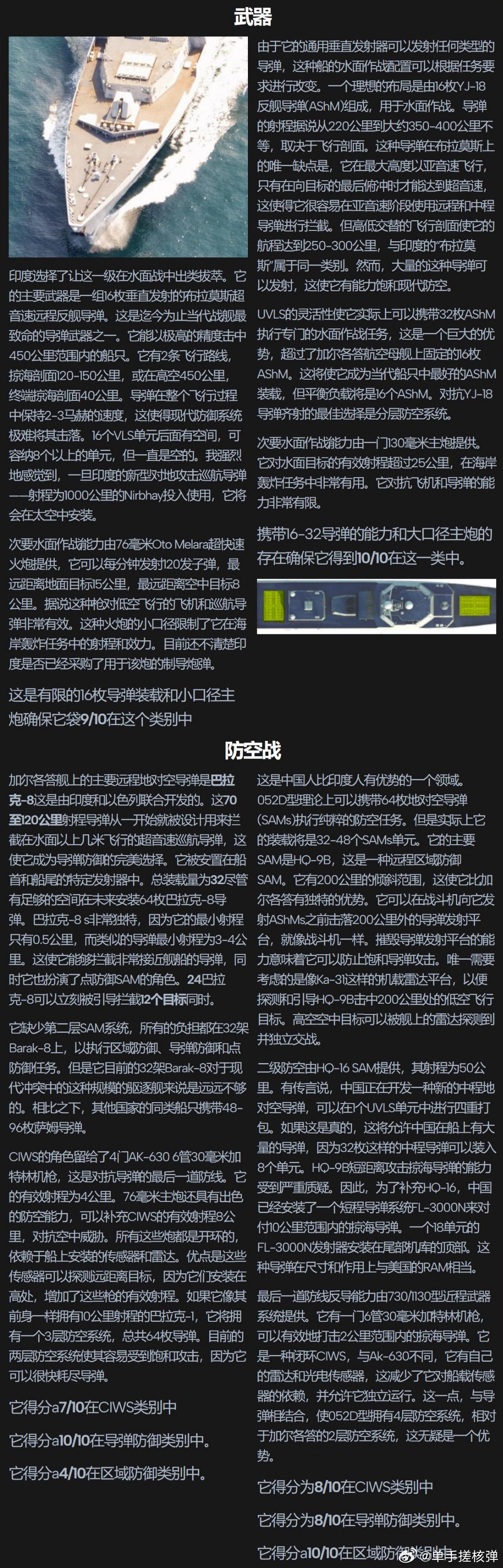 第一,忽视了长剑10巡航导弹。第二,红旗10是24发不是18发。第三,1130近防炮射程才2公里?ak630却有4公里?总体来说,算是印度人里面比较客观的了,外网上印度人的迷之自信压根不能看。
