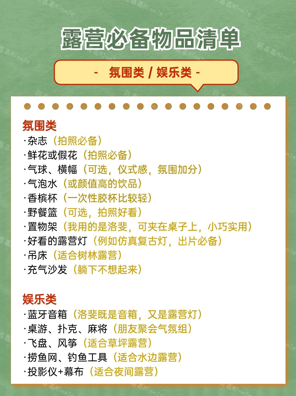 超全露营物品清单,保姆级攻略