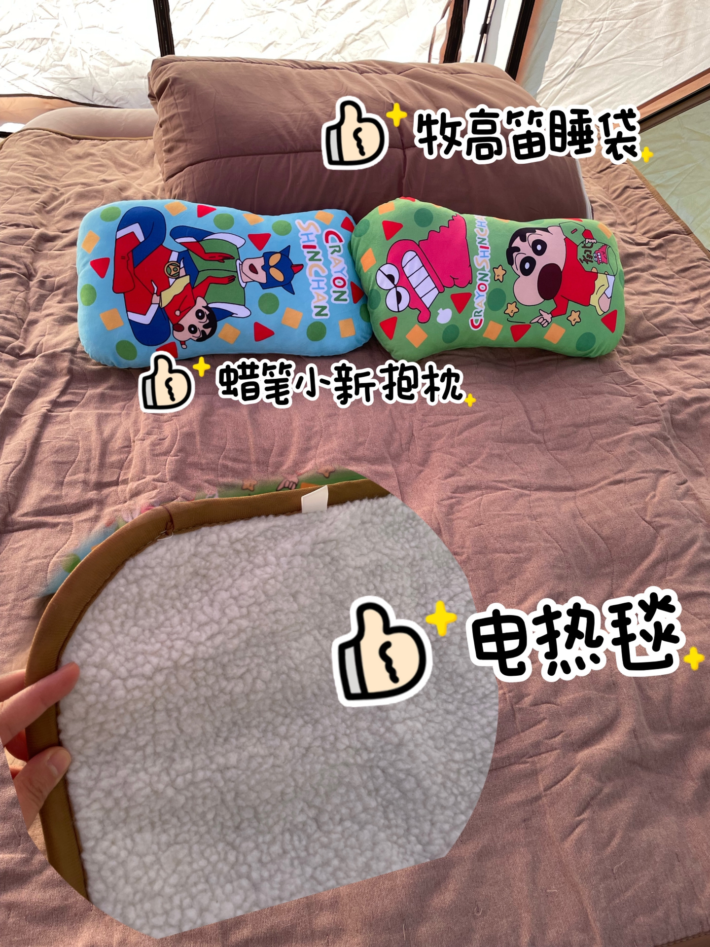 ③电热毯,问了商家可以直接放在气垫床上,分为四档,安全系数高。