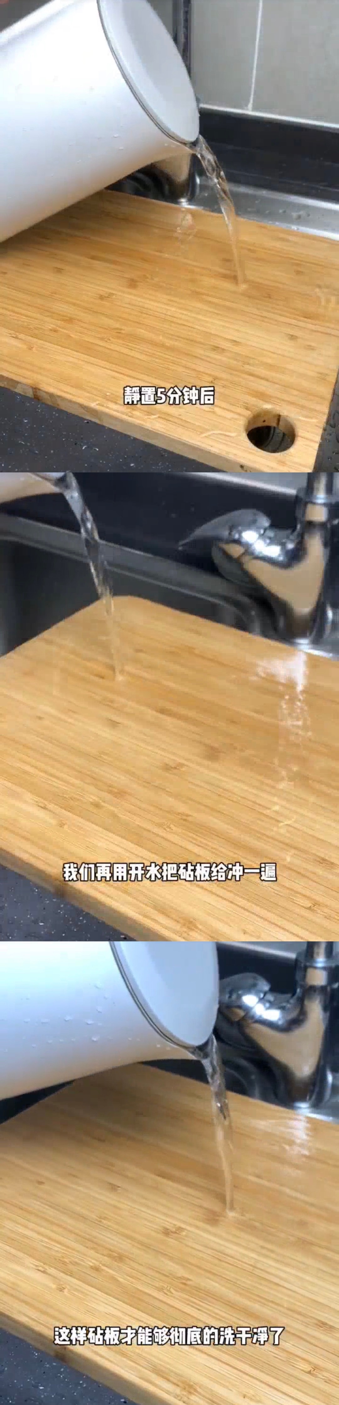 嗨💡热水烫案板真的不能消毒杀菌!今天教你一招正确清洗案板,干净如新还能去异味!
