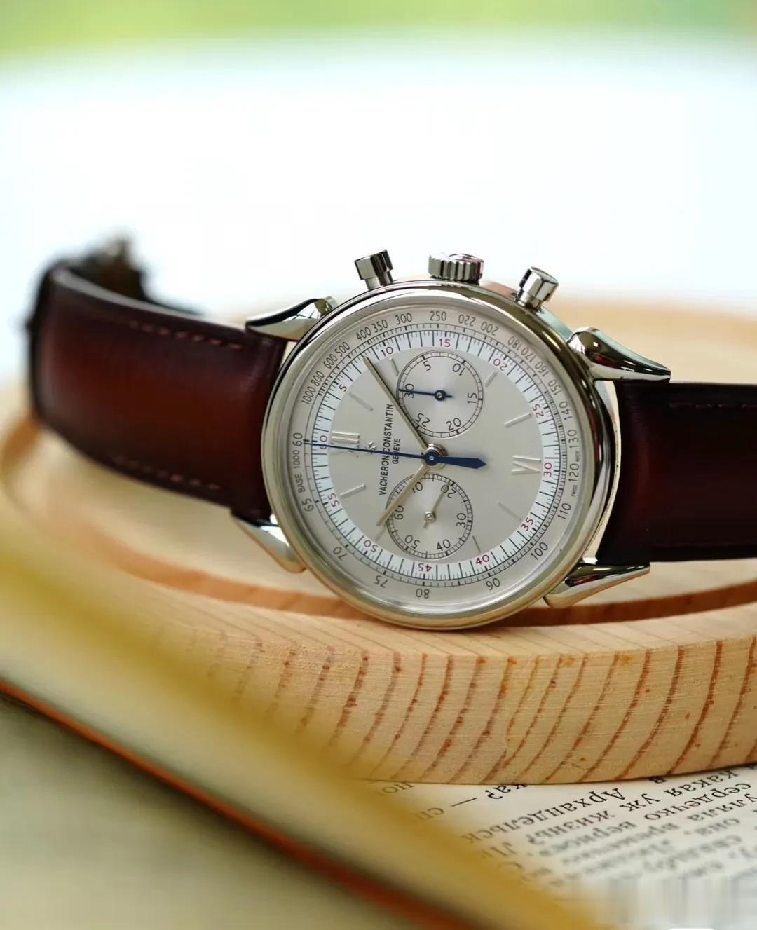 江诗丹顿 历史名作系列 牛角计时腕表鉴赏 江诗丹顿历史名作5000H/000A-B582,一部承载着匠心独运的手动机械腕表。银灰色的表盘,宛如流淌的时光,圆形的造型,让人感受岁月的沧桑。深棕色的表带,仿佛牵着我们走过岁月长河,不锈钢针扣,守护着每一个流转的瞬间。 38.5毫米的表径,10.9毫米的表壳厚度,完美诠释了男士的魅力与稳重。18k金指针,棒状时标,最为特殊的地方在于其表耳造型,线条如同牛角一般,也更像是一滴挂在荷叶边上的露水,弧形的线条+镜面抛光会呈现非常温润的效果。真皮表带,柔软舒适,与不锈钢表扣相得益彰,完美贴合手腕,给予最佳的佩戴体验。江诗丹顿5000H真的是最值得收藏的江诗丹顿现代计时腕表了。