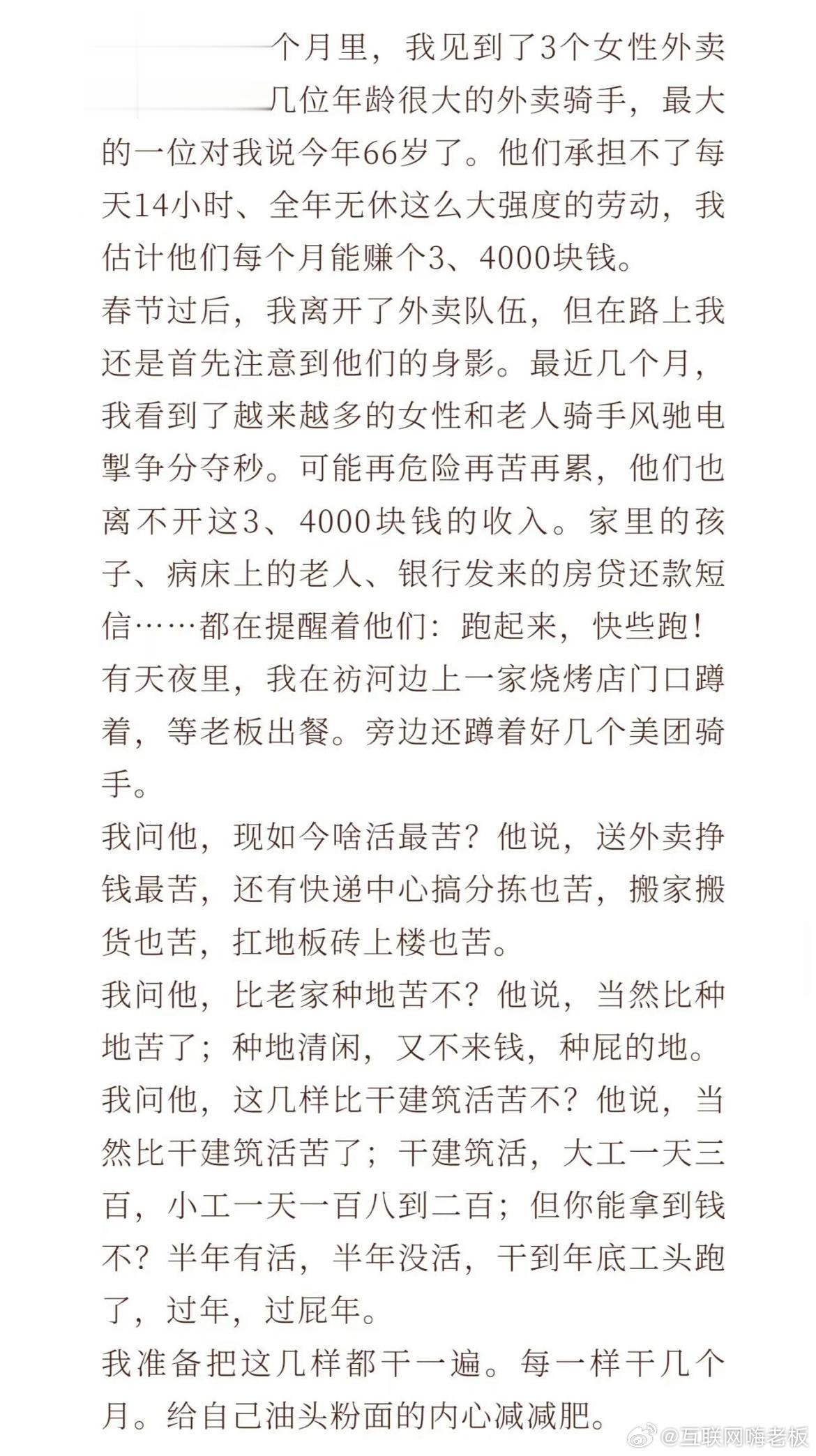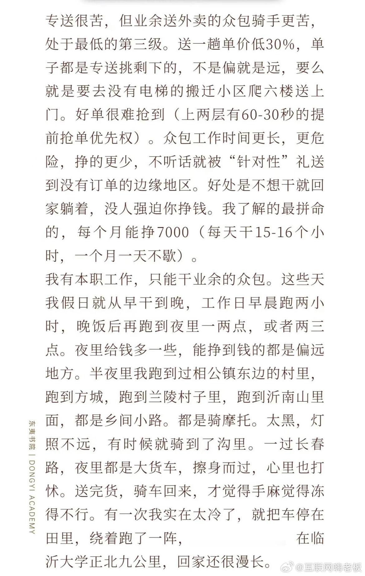 我就指出一点错误吧,麦记和肯记得专职骑手早就没有五险一金了