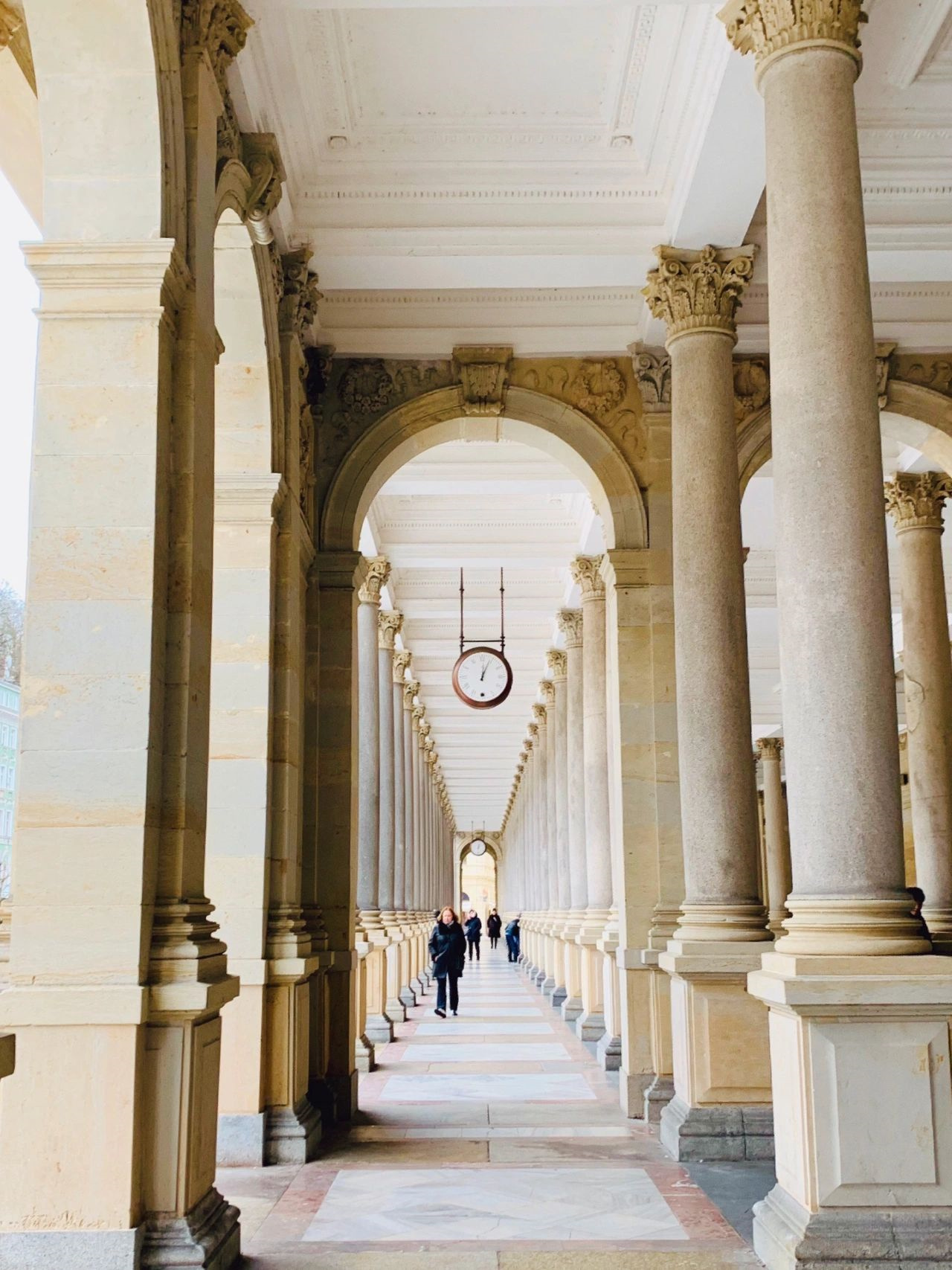🌟磨坊温泉回廊:124根科林斯圆柱,柱廊上的12个雕塑代表一年的12个月