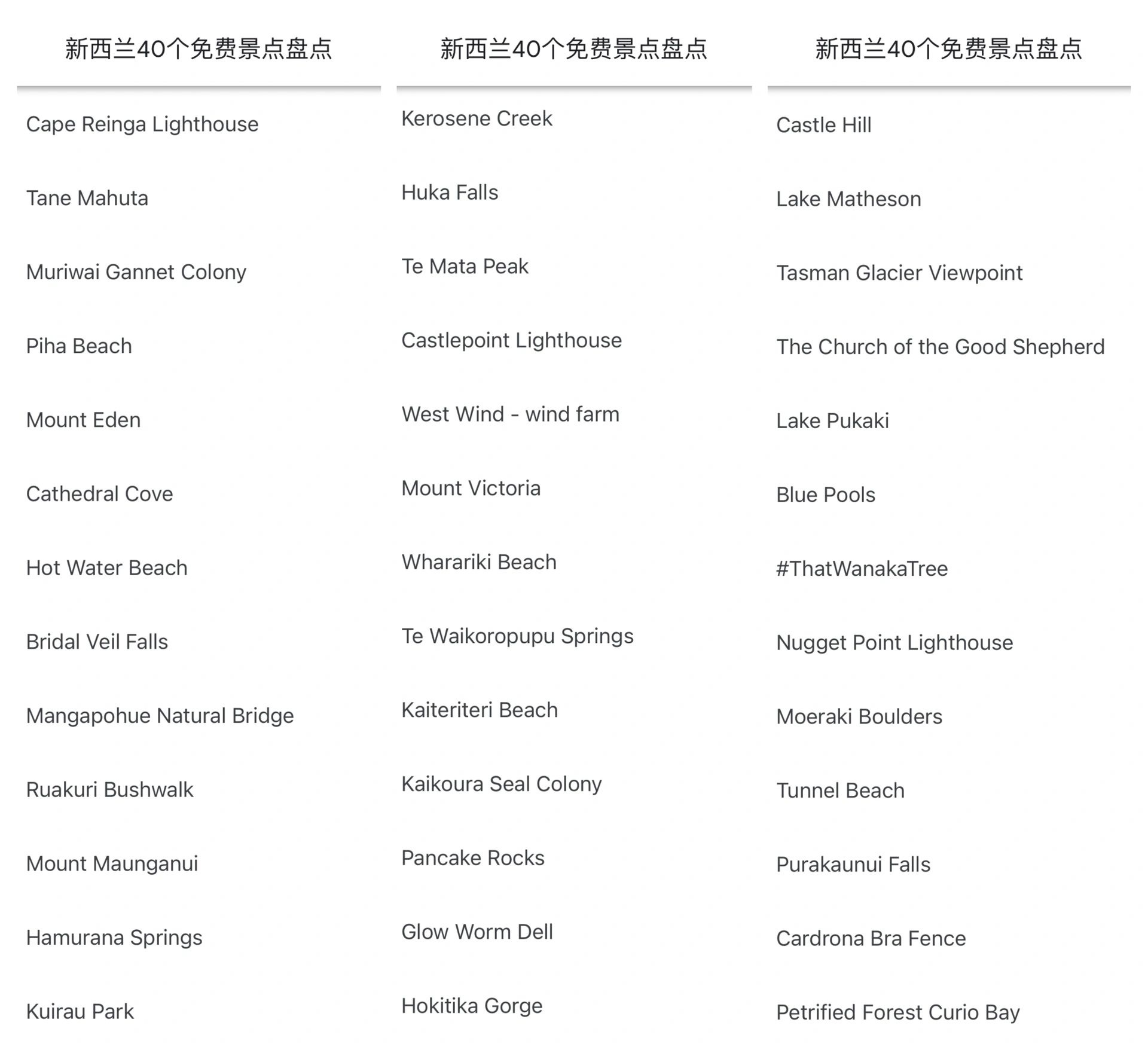 40个景点总结到了最后一张图上(差一个Waipapa Lighthouse)。大家来新西兰旅行的时候把地名输入谷歌地图🗺️就能找到