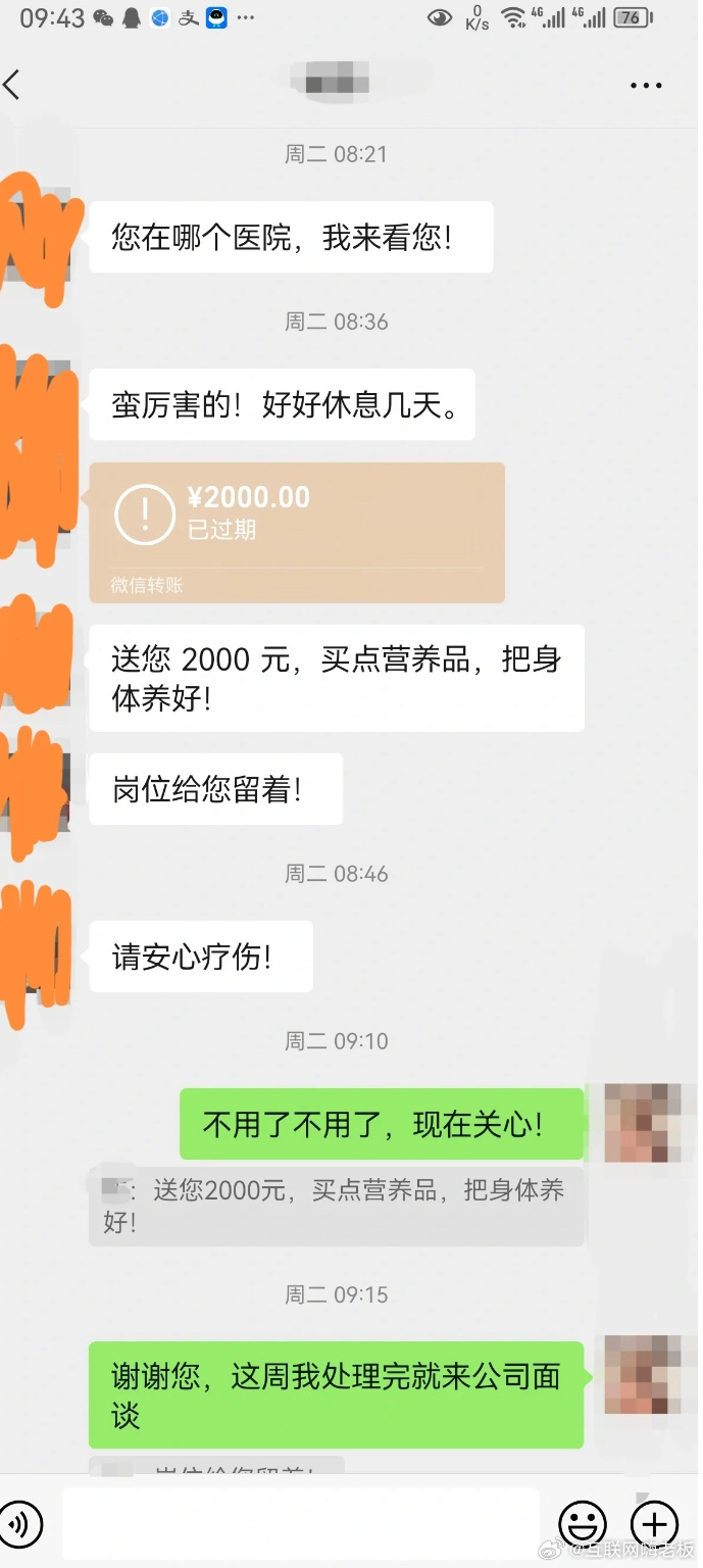 面试路上被车创了,去不了了,老板给我转了2000块钱[揣手][揣手][揣手][揣手]