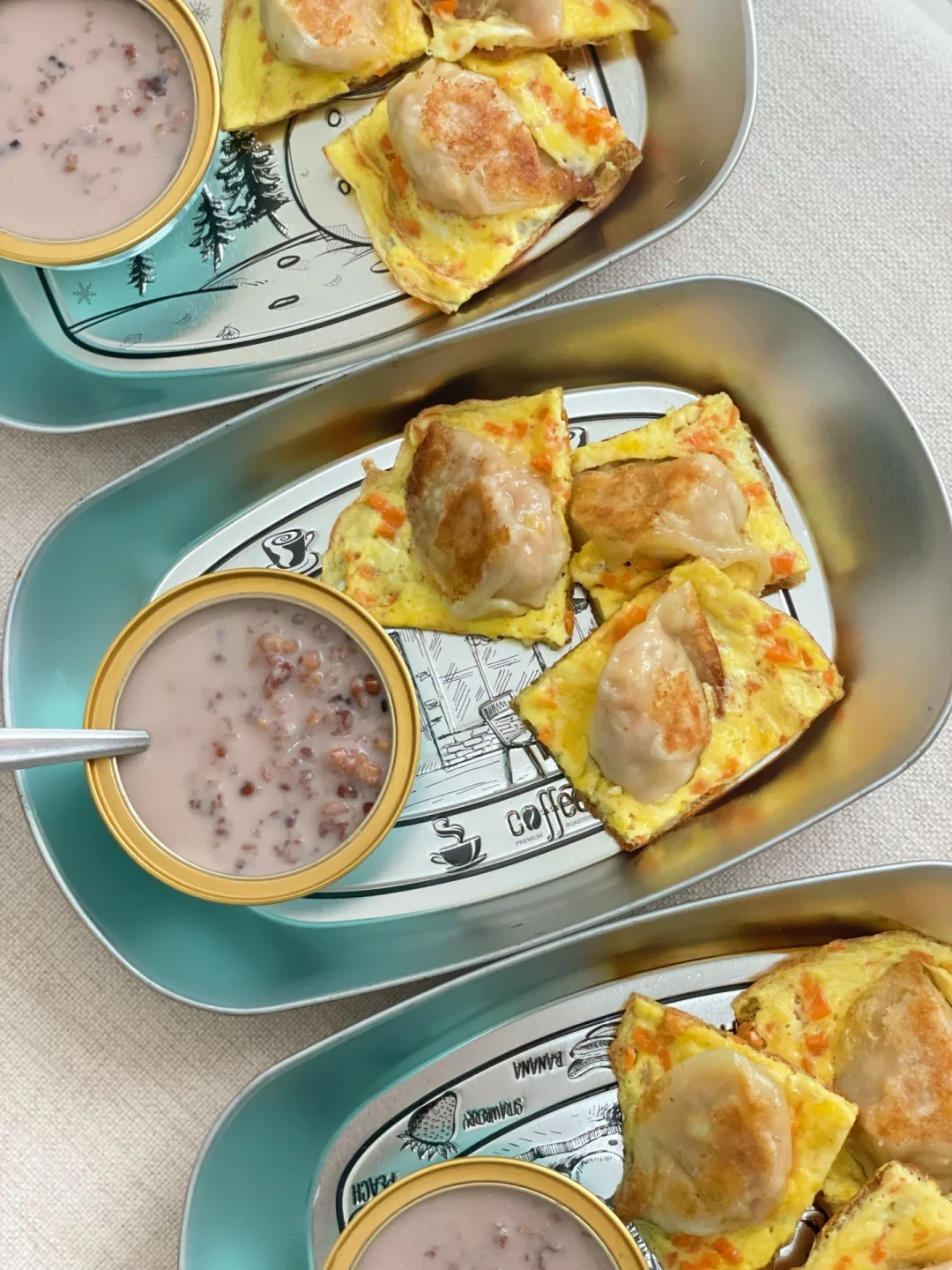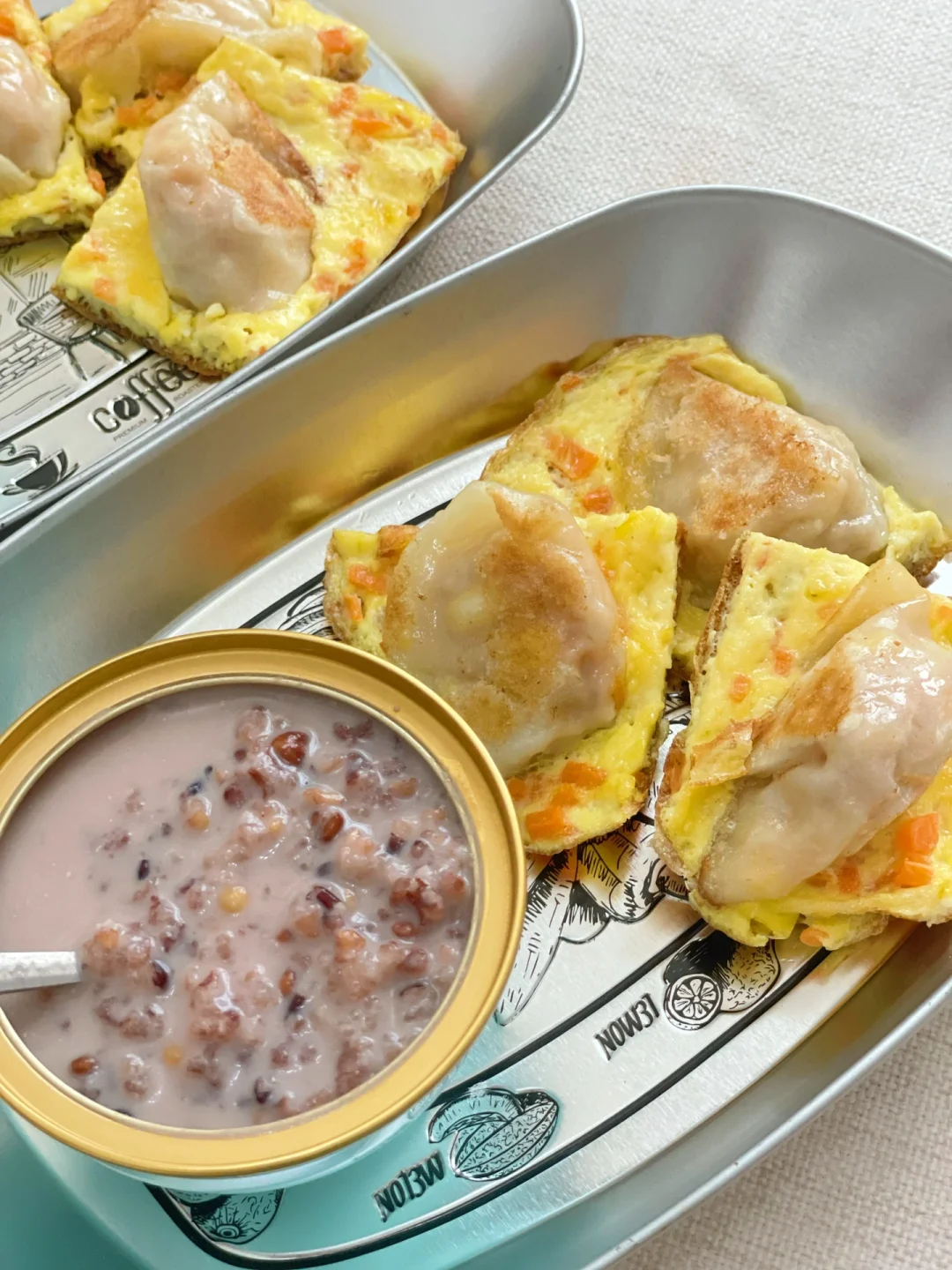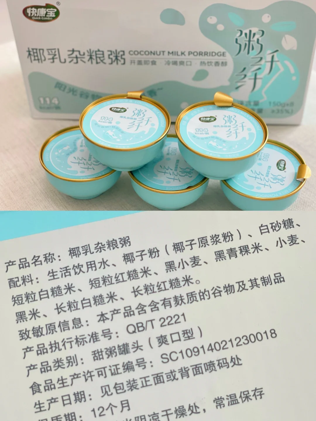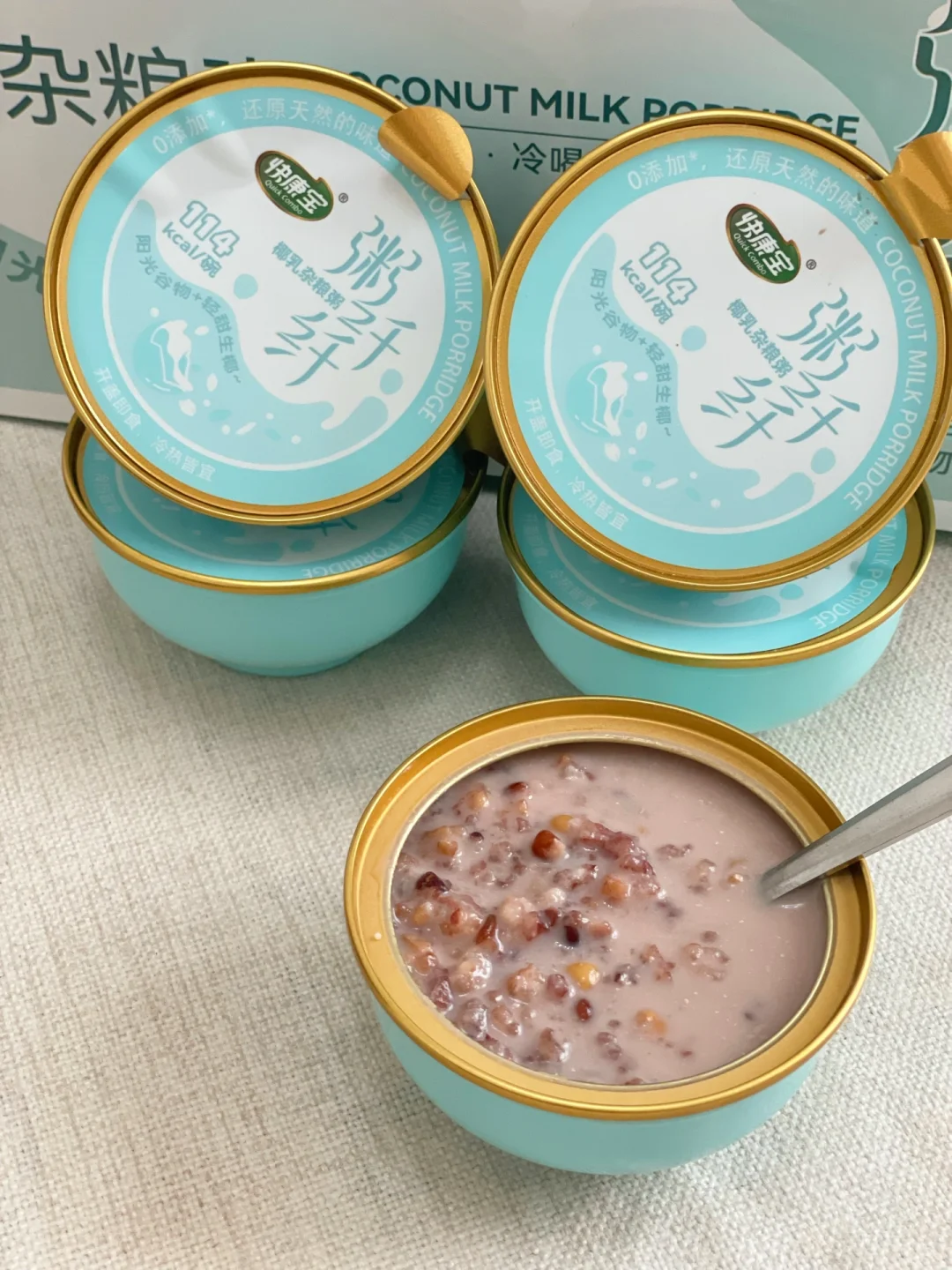 🔆今天来一份快手好吃的早午餐 🌟快康宝粥纤纤 ❤️椰乳杂粮粥:里面是糙米、黑小麦、黑青稞米等饱腹感很强的粗粮。搭配了椰乳的清香,口感非常的清爽 ❤️常温保存,开封即食。除了可以用来做早午餐,作为下午茶的加餐也很不错哦 ❤️一碗只有114卡,配料表干净,可以安心吃 🌟鸡蛋饼煎饺 鸡蛋|胡萝卜|饺子 1️⃣鸡蛋打散,混合胡萝卜丁备用 2️⃣饺子在不粘锅中煎到表面焦黄,放小半碗水盖锅盖,把饺子焖熟 3️⃣倒入蛋液,中小火把鸡蛋煎成蛋饼即可