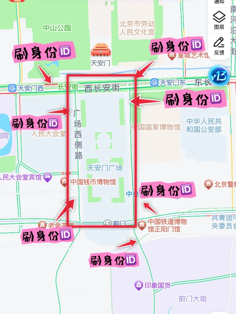 6️⃣切记:正阳门 往人民大会堂 方向刷卡口