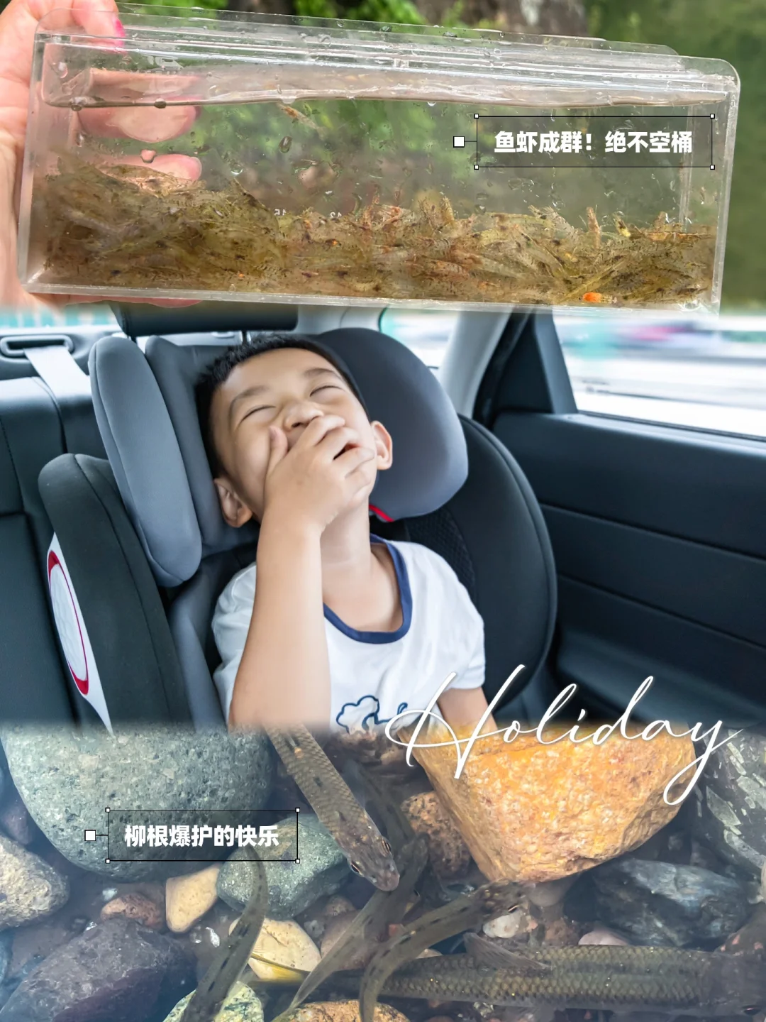 🐟🦐鱼虾成群,谁来谁爆护‼️石头缝里可以捞小虾,柳根可以路亚、小物钓,资源特别好,雪球不到5岁都能连杆儿,我们找到一个爆护标点,不到1小时我们仨钓了一大桶。路亚用沉水助投器+16或18号飞蝇钩咔咔上鱼