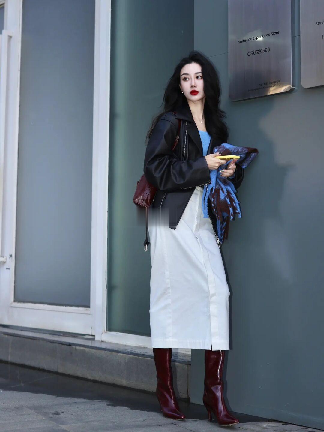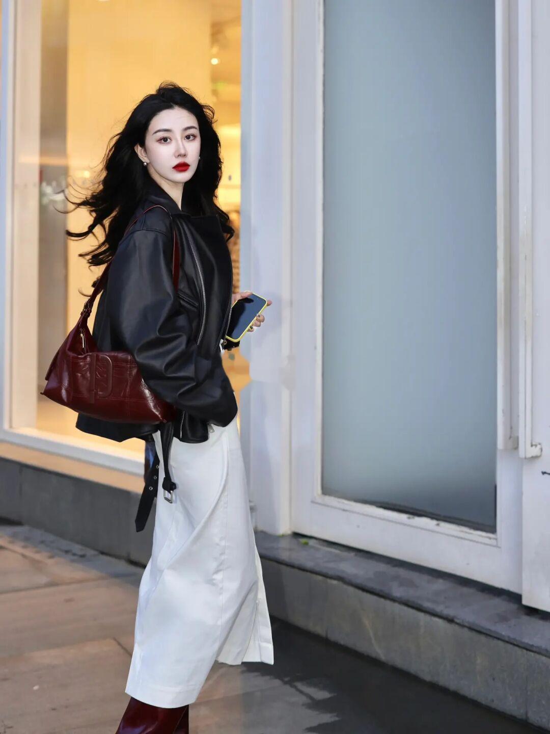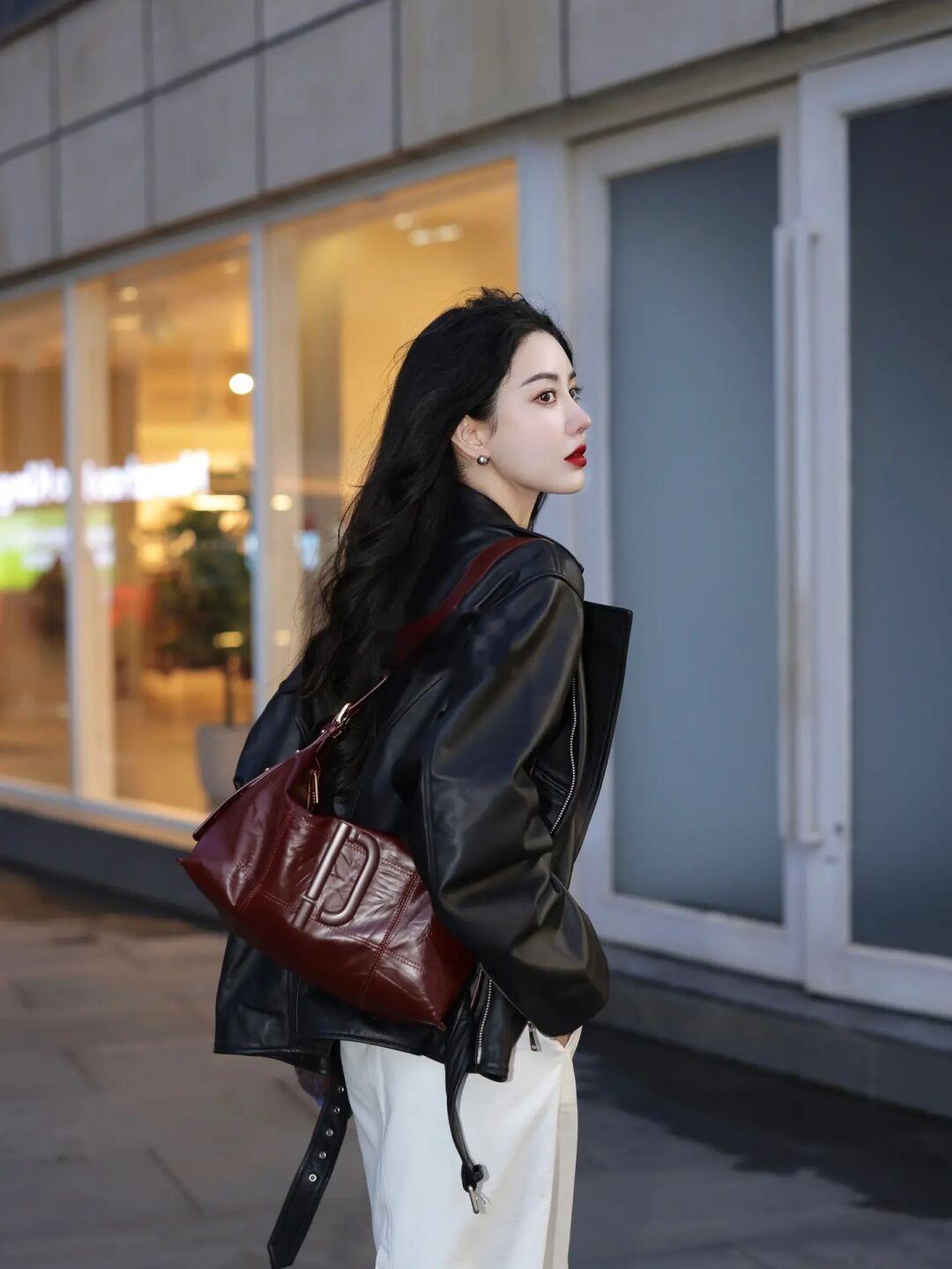 突然降温🌧️凉风习习 率性皮衣搭点酒红🍫 做个日常不露腿的酷女子