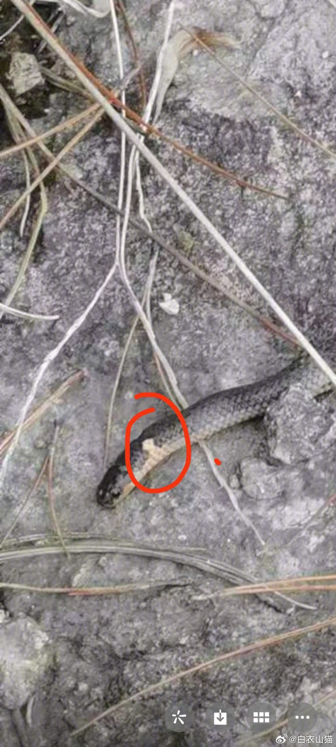 可怜的钝尾两头蛇,筷子大小,只捕食蚯蚓、昆虫为主,无毒,对人无害,却被人打死了。图三标的是,真正头部的标志。
