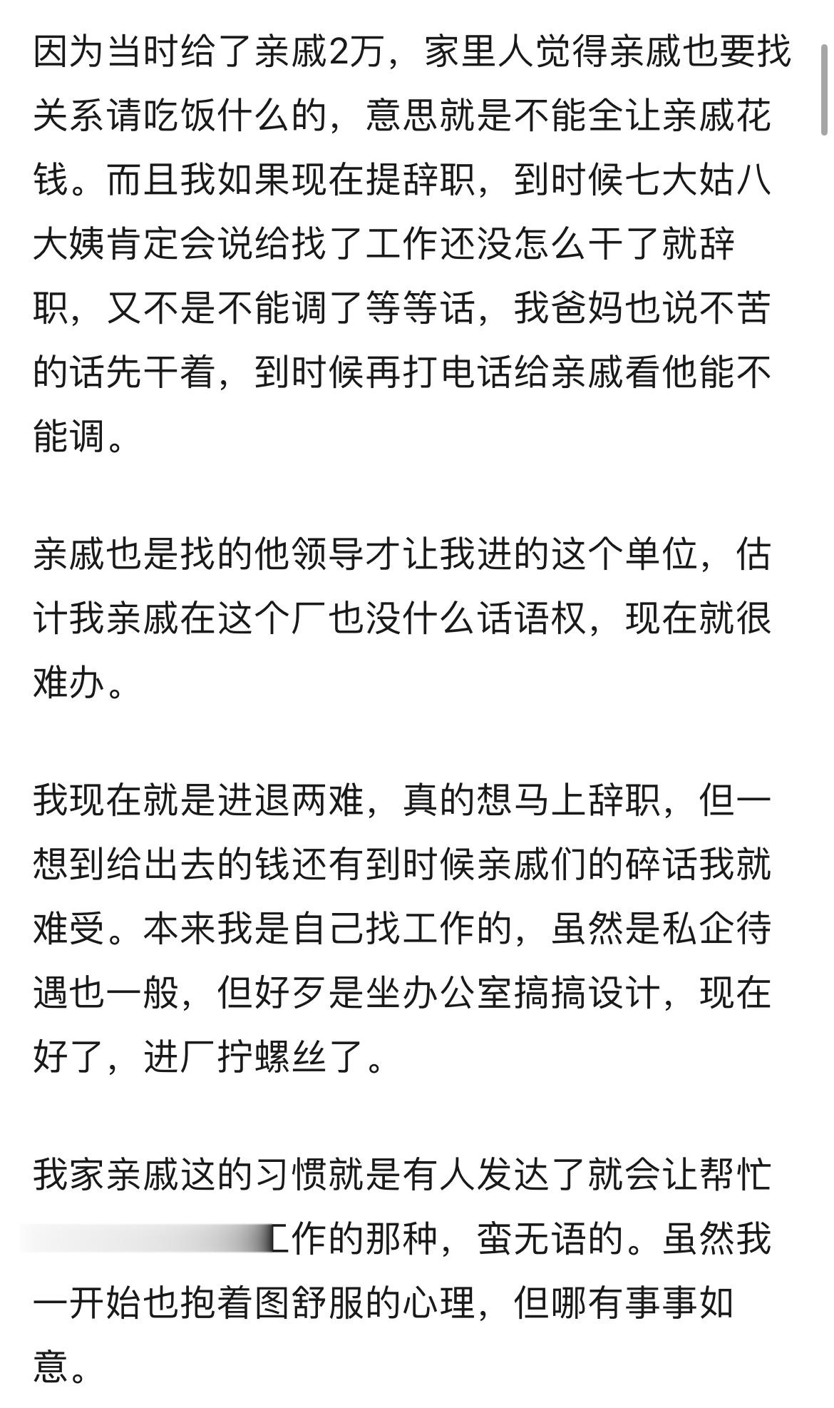 花了两万块钱找亲戚托关系,结果被安排进工厂拧螺丝了,属实进退两难……