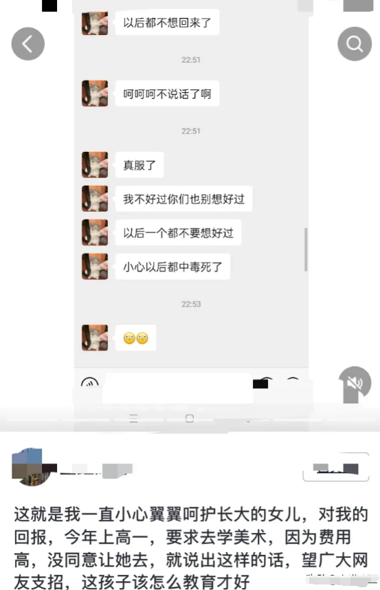 起因是:孩子上高一,要求学美术,因为费用太大,没有同意,就说出了这样的话! 请教网友,这样的孩子应该怎么教育?