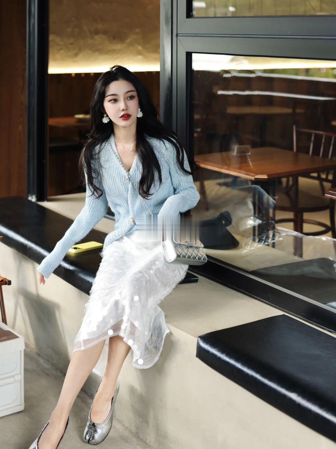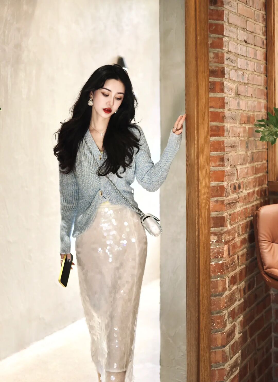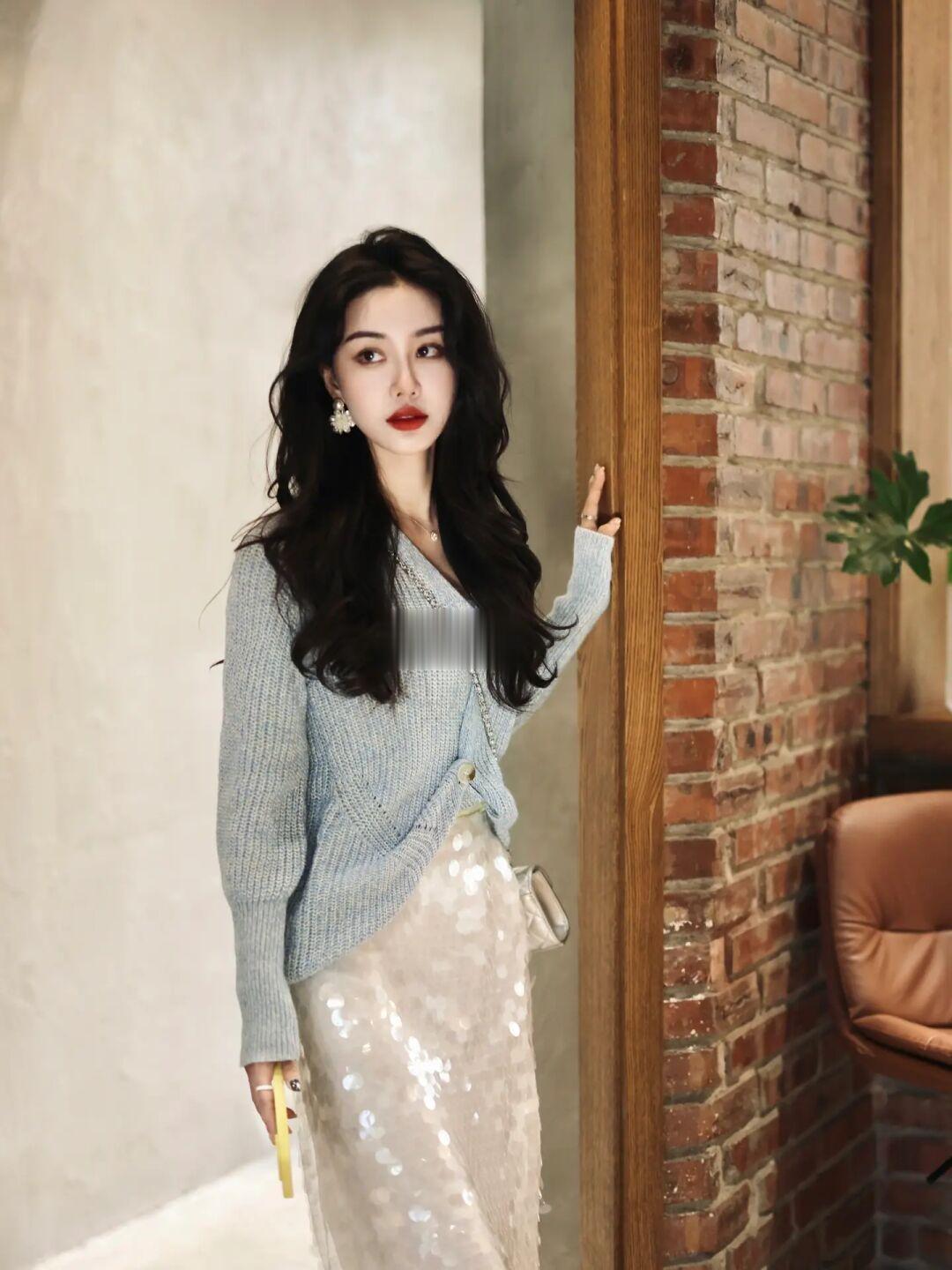 毛衣给的温柔 摇曳亮片裙摆~ 光影浮动的氛围感