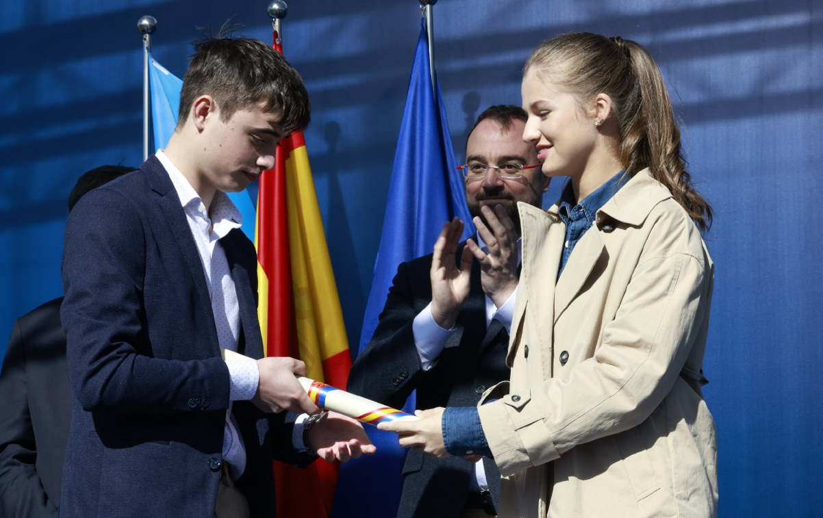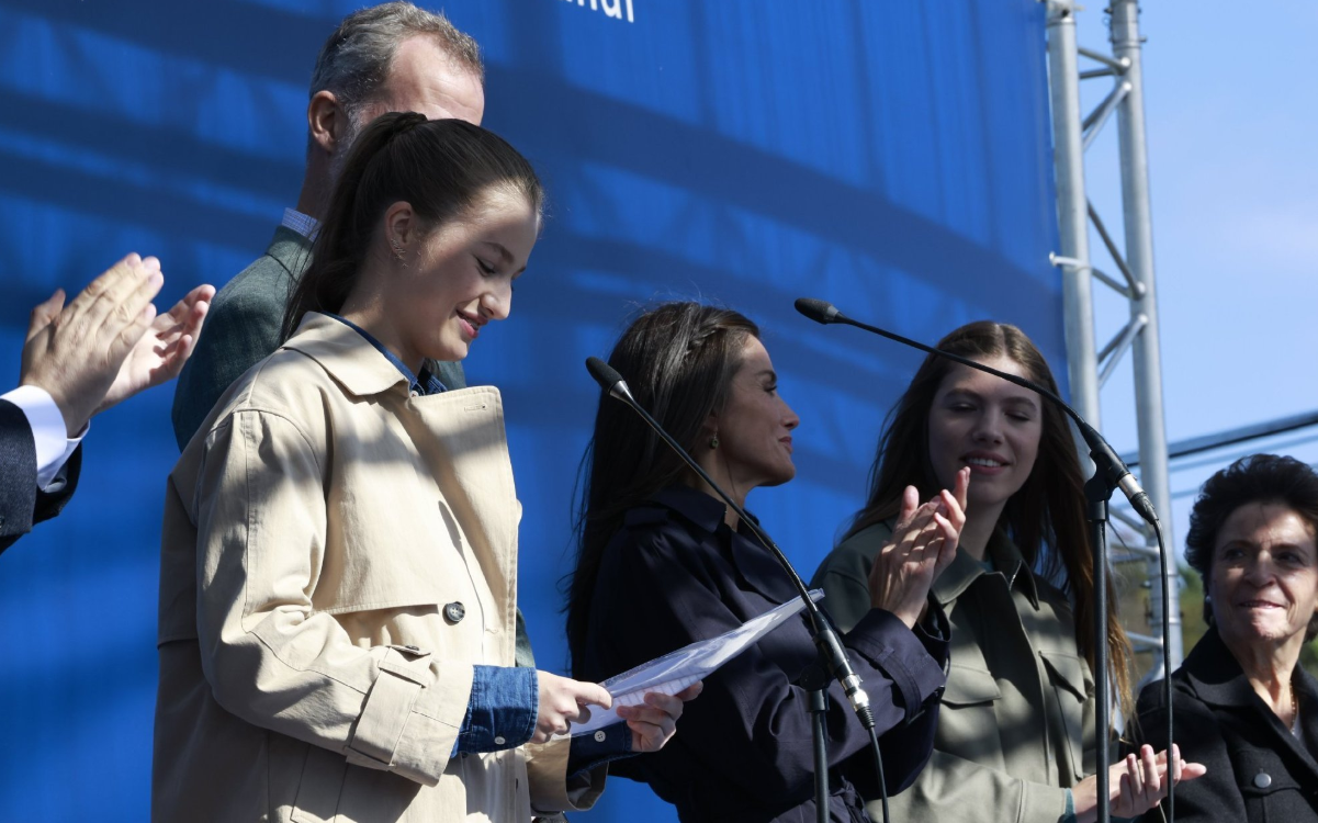 西班牙女王储和一个老奶奶握手,还为一个帅小伙颁模范奖,小小年纪太有女王范儿,落落大方的样子,已经初具女王范儿了,还有在阿罗斯地区又发表了演讲,穿风衣扎马尾辫活力满满又沉稳。