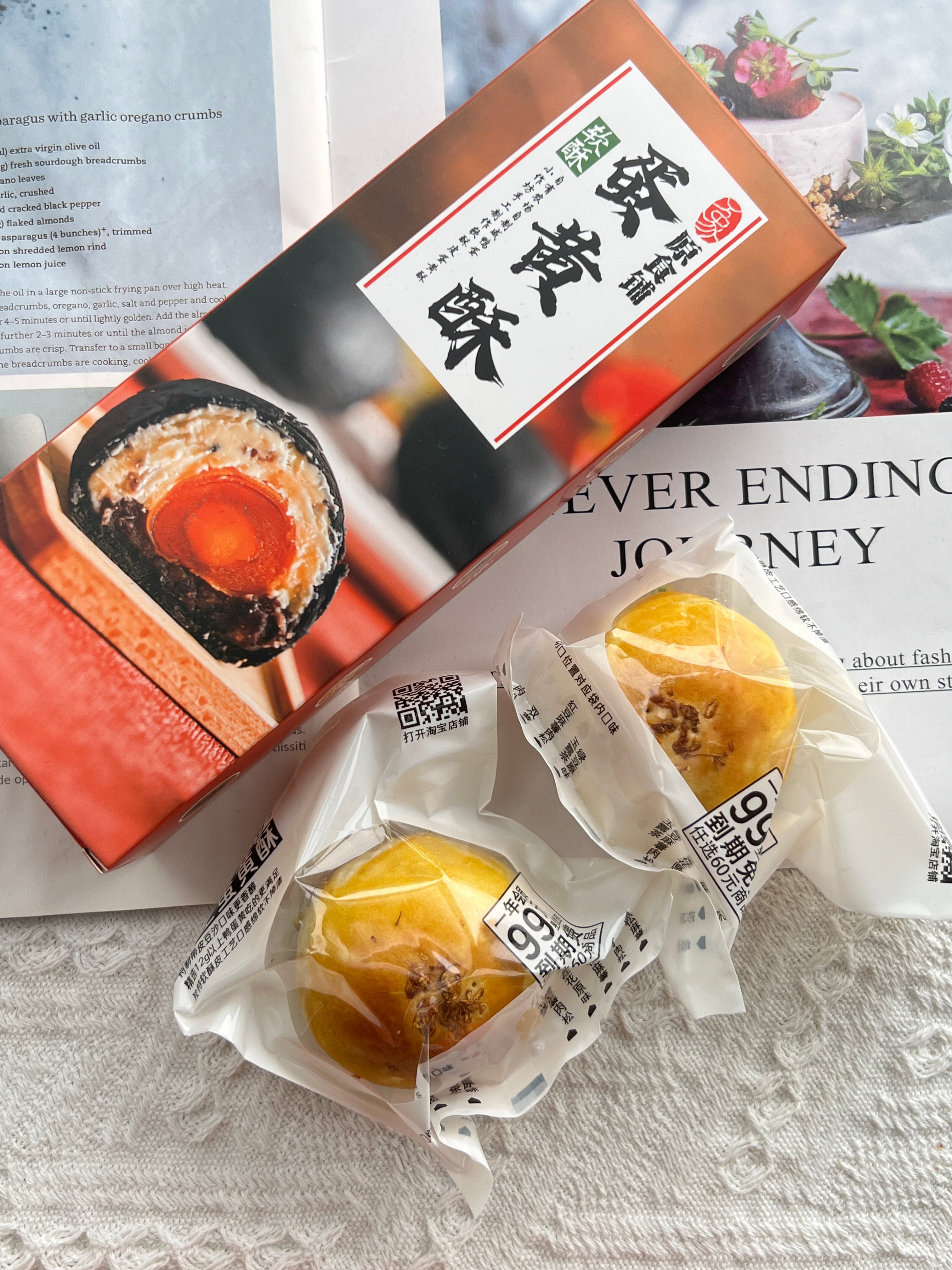 这个季节刚出的草莓真的除了酸没有别的味道 看来还是要等过段时间才会好吃🍓 原食铺的金桂花蛋黄酥好有秋天的感觉 打碎的蛋黄更加咸香也不会像整颗蛋黄那么干噎 桂花馅带着微微的花香也不会太甜腻~
