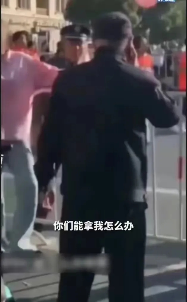 执勤警察劝阻后,小仙女反而情绪失控,大吵大闹。并朝一个年纪大的穿制服的人踹了几脚。