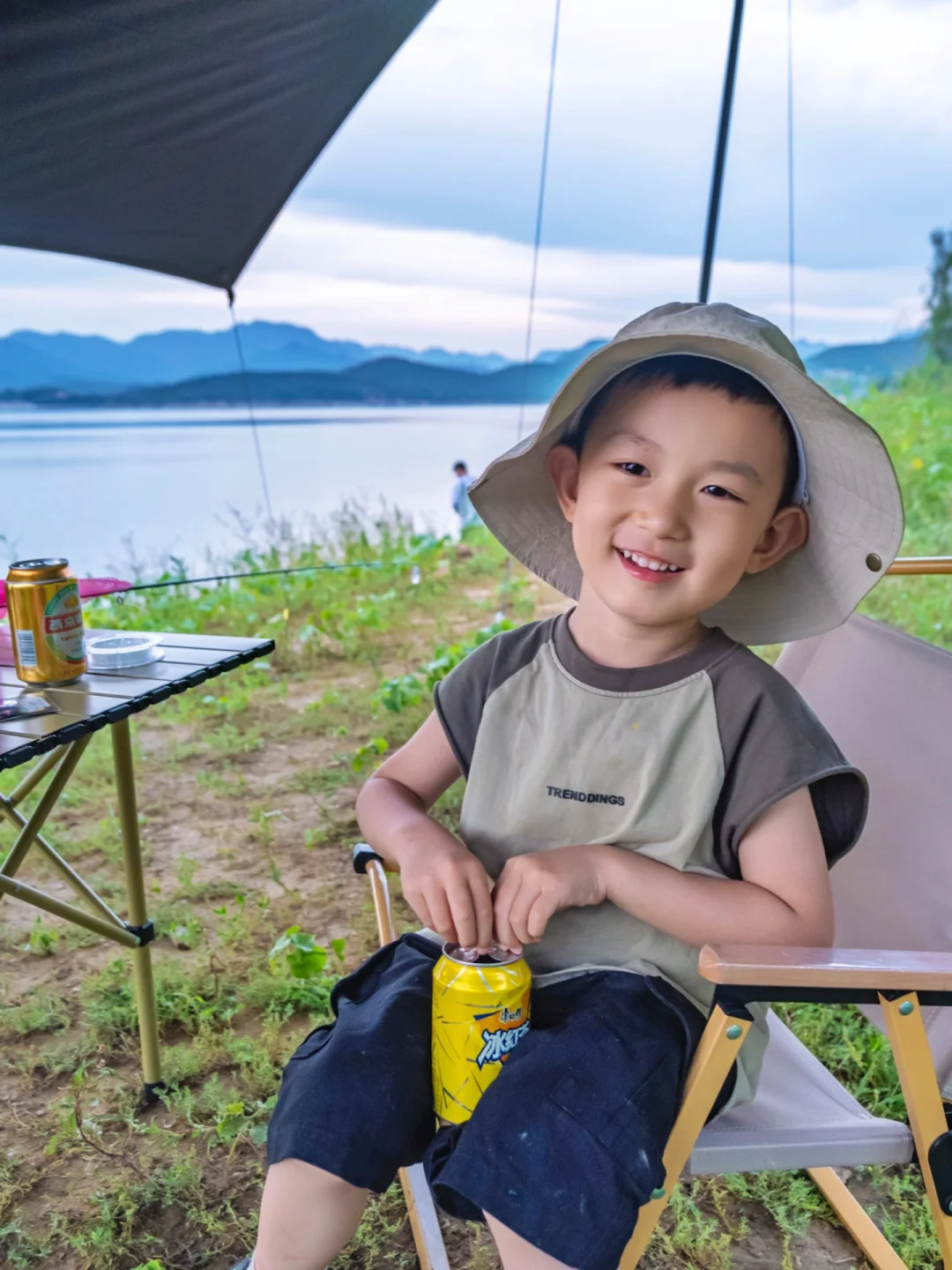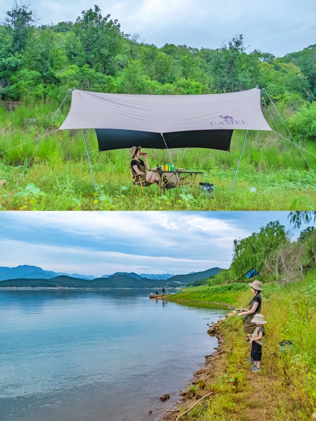 ⛺️我们就是一边露营一边路亚🎣把天幕支在金海湖边,治愈系美景被我们一览无余!气势磅礴的拦水大坝!山青!湖俊!水美!