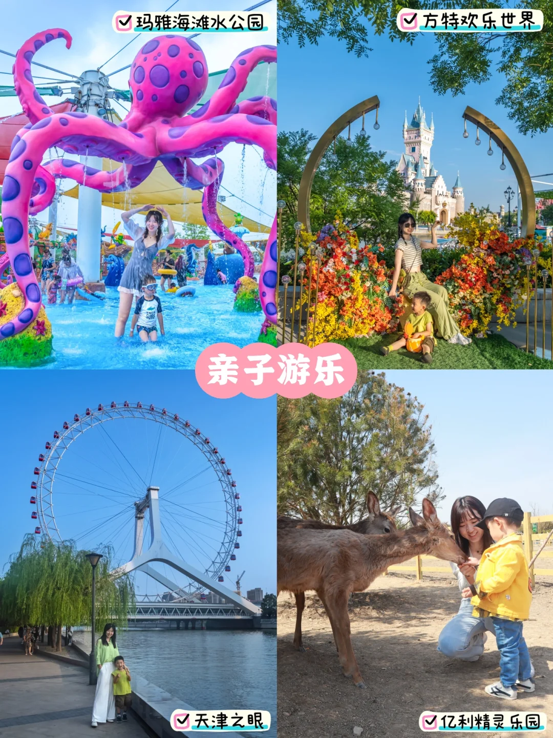 老粉都知道这个夏天我开始带娃爆刷天津🔥刷游乐园🎡看海漫步🌊蓟州玩水💦打卡拍照📷 ‼️下面的9种玩法你一定要收藏好‼️ . 1️⃣亲子游乐 👉🏻带娃必刷‼️大型游乐园、水世界特别适合玩儿上一天😝 ✔️方特欢乐世界/水世界 ✔️玛雅海滩水公园 ✔️天津欢乐谷 ✔️伊利生态精灵乐园 ✔️天津之眼摩天轮 . 2️⃣免费看海漫步 👉🏻滨海新区有很多免费公园,漫步在海边、吹着海风、可以露营,太惬意啦🌟 ✔️东堤公园 ✔️南湾公园 ✔️东疆建设开发纪念园 ✔️妈祖文化园 ✔️南堤公园 ✔️临港海岸线公园 . 3️⃣赶海挖蛤捉蟹 👉🏻退潮以后捡超多的蛤蜊和小螃蟹~赶海免费~提前看海潮汐表哦 ✔️东疆亲海公园 ✔️南疆港南航路 ✔️观澜路野海滩 ✔️临港黄河道 . 4️⃣玩水溯溪看瀑布 👉🏻天津蓟州是玩水的宝藏地,森林瀑布值得一去‼️ ✔️梨木台风景区 ✔️蓟州泥水河流域 ✔️九龙潭风景区 ✔️空港景观湖 . 5️⃣文博研学 👉🏻边玩边学,寓教于乐 ✔️天津博物馆 ✔️滨海新区图书馆 ✔️国家海洋博物馆 ✔️极地海洋公园 ✔️航母主题公园 ✔️天津科技馆 . 6️⃣建筑打卡 👉🏻天津的建筑都太有特色了,适合压马路 ✔️五大道 ✔️意大利风情街 ✔️解放北路 ✔️西开教堂 ✔️古文化街 . 7️⃣看各种大桥 👉🏻每一座桥都有特点,值得一看哦 ✔️永乐桥 ✔️金汤桥 ✔️北安桥 ✔️大光明桥 ✔️解放桥 . 8️⃣坐双层巴士 👉🏻45分钟游览天津街景,免费讲解 💰日场30/人,夜场50/人,1.2米以下免费无座。上车地点:天津之眼桥下/意式风情街但丁广场 . 9️⃣逛展会 👉🏻第13届中国旅游产业博览会在天津举行,共有8个展馆,7个展区。在S9展厅可以看到天津展区的旅游宣传,有非遗文化和体验专区、有VR互动体验、还有各种艺术表演。S7展区还有天津特色美食,煎饼果子、炸糕、起士林、锅巴菜。感兴趣的朋友可以多来天津转一转,感受一下风土人情 . 我是杨小兔儿🐰 爱旅行、爱分享、擅长做实用攻略✏️ 更多宝藏旅行好去处欢迎去主页看看🏷️ -