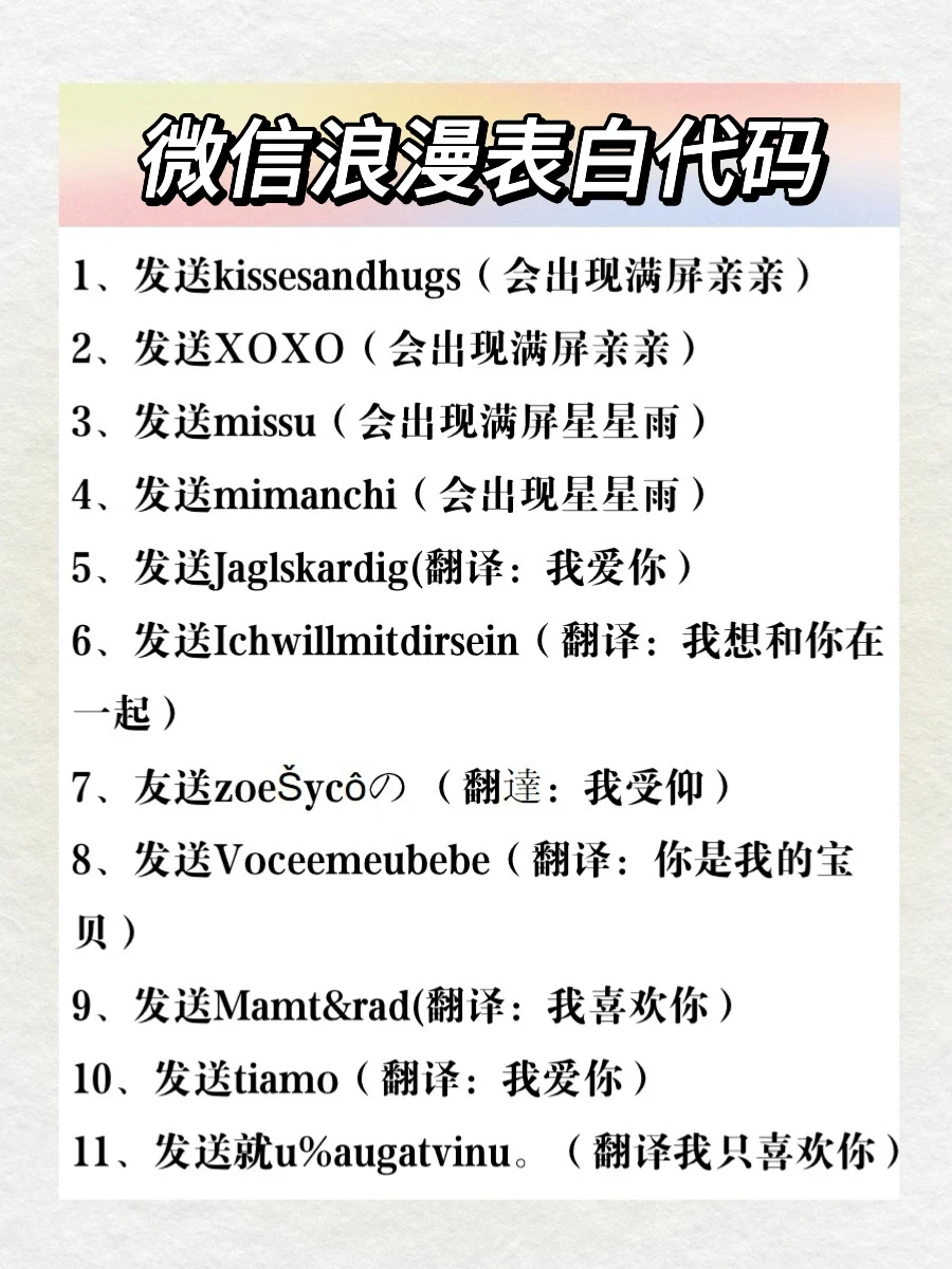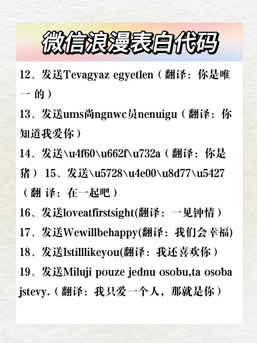 ✨这个微信表白代码也太浪漫了吧💗 🌈表白将这个代码发给crush[偷笑R]直接一整个拿捏住了[萌萌哒R] 🌈微信真是太懂浪漫啦💕表白小tips‼️ 🔥快来艾特好闺蜜一起来看🐛🐛🐛