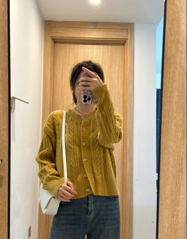 你是有多爱这款式,粉色感觉麻花和整体材质饱满蓬松一些,可能含有棉,黄色可能羊毛含量高点看着有服帖感质量好点