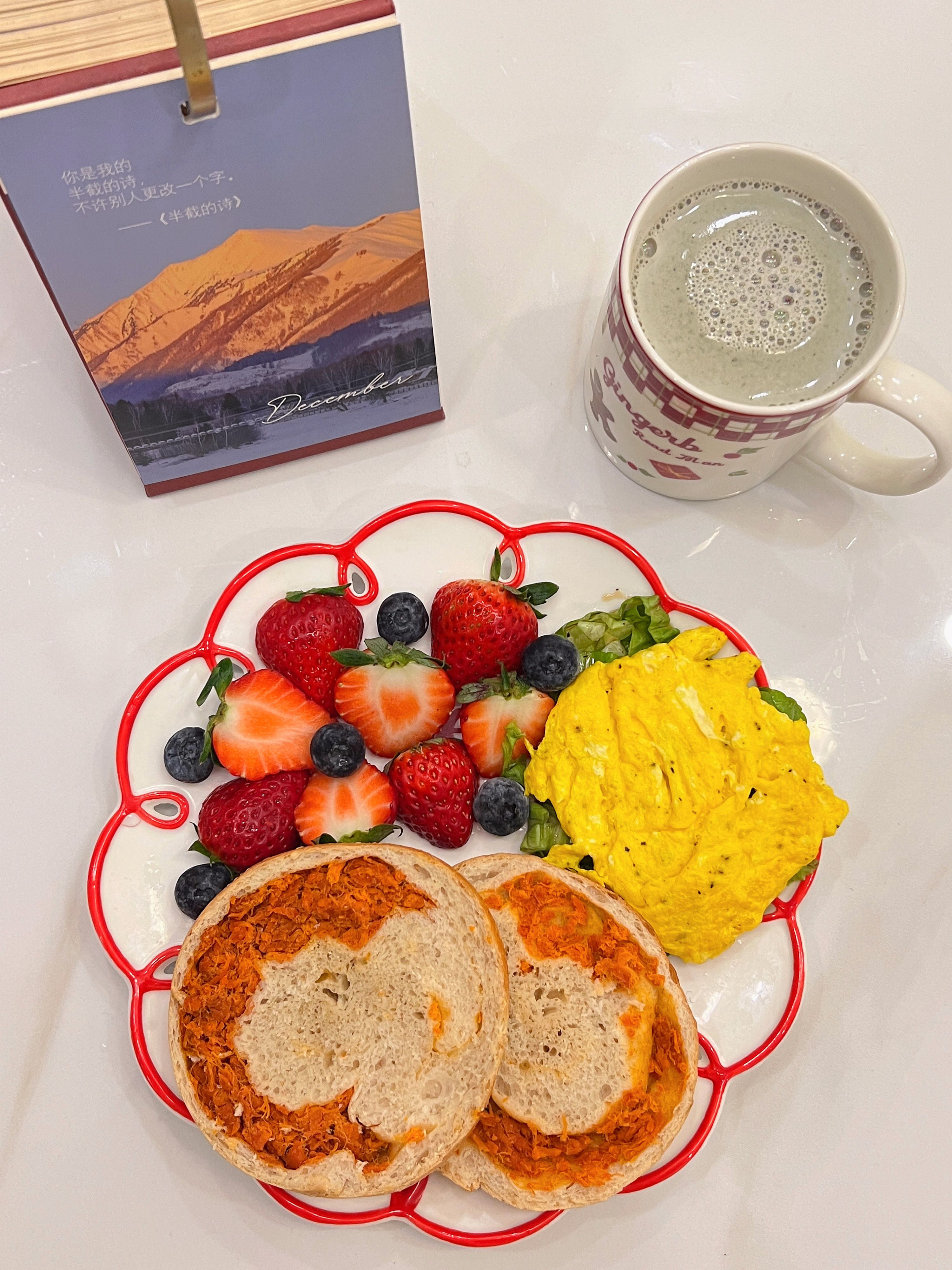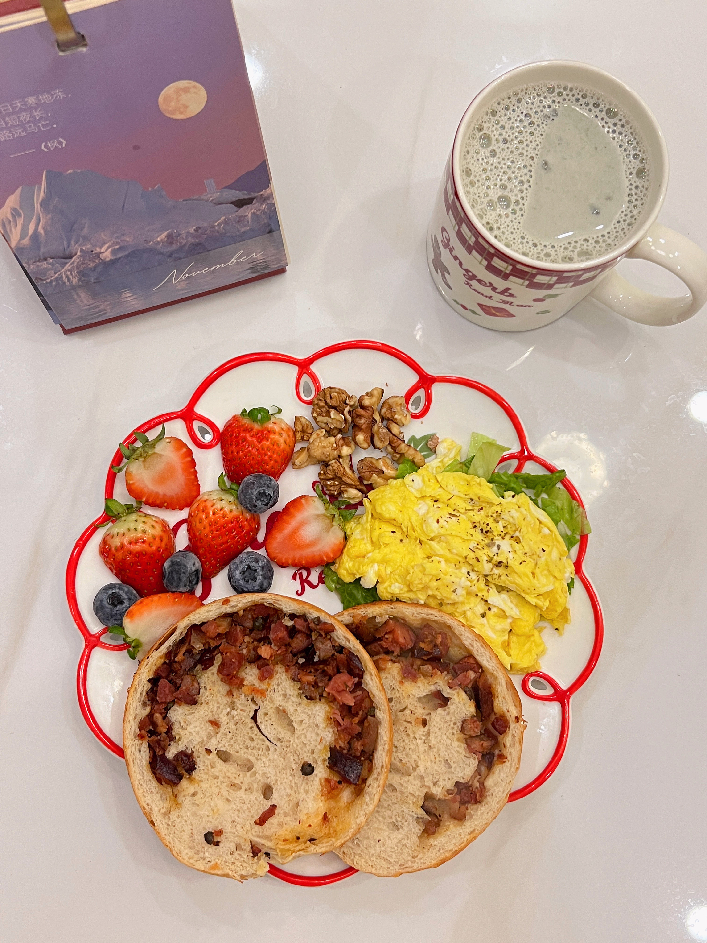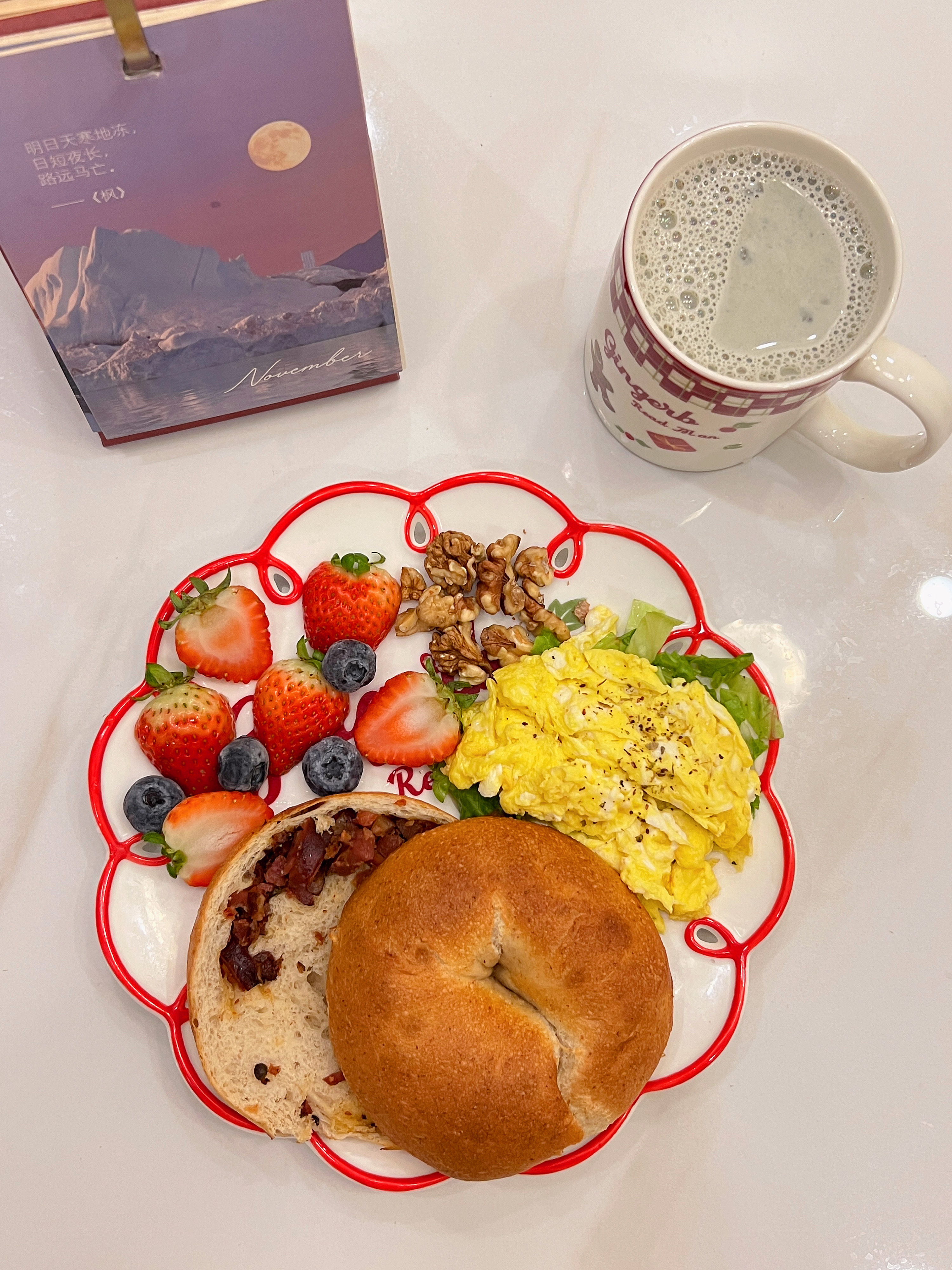新的一周好啊~每天越醒越早早餐也越吃越多🥯