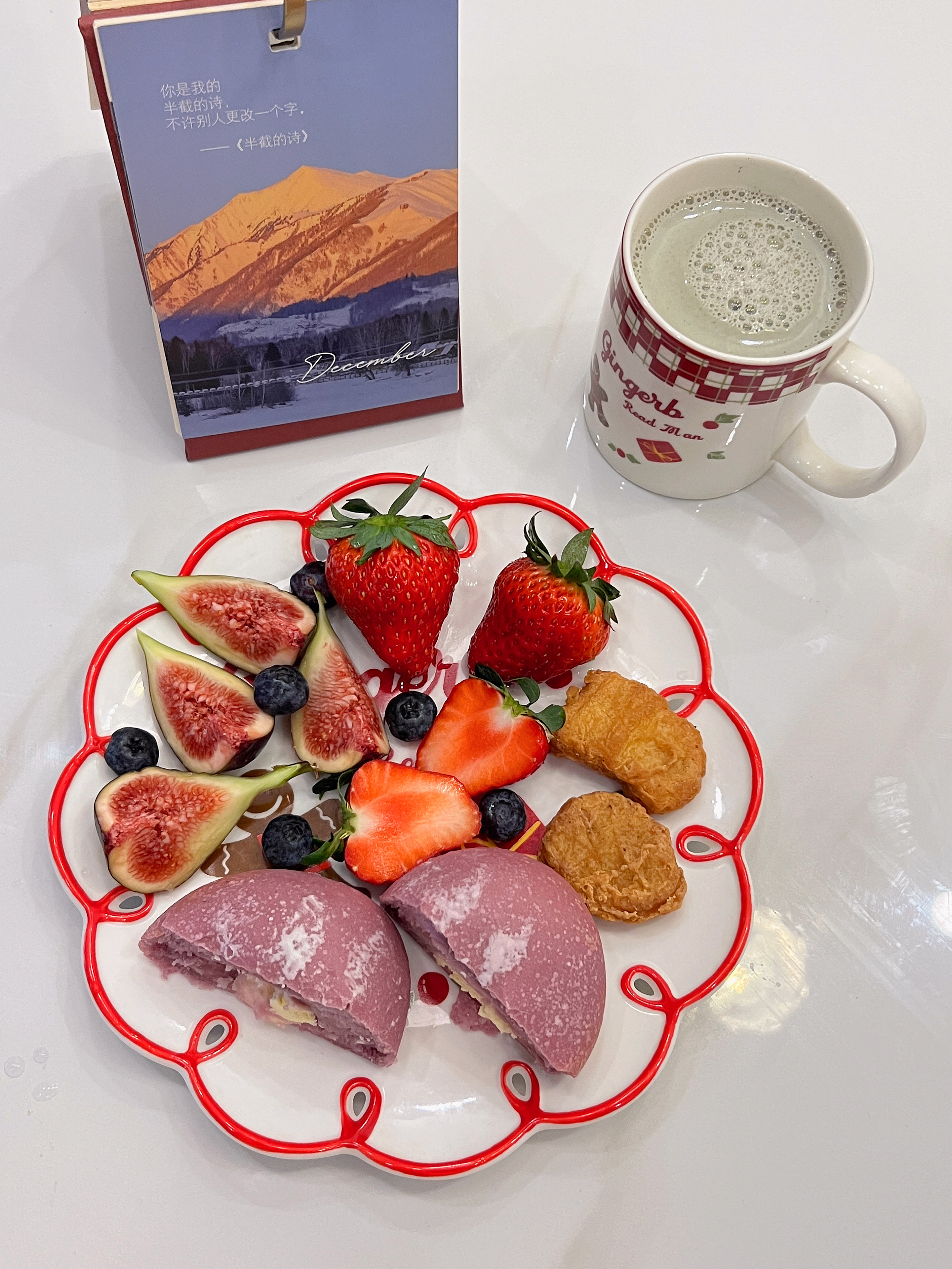 最近买的草莓和无花果都好甜甜 就是网购的车厘子一直不发货 每天都有面包和家
