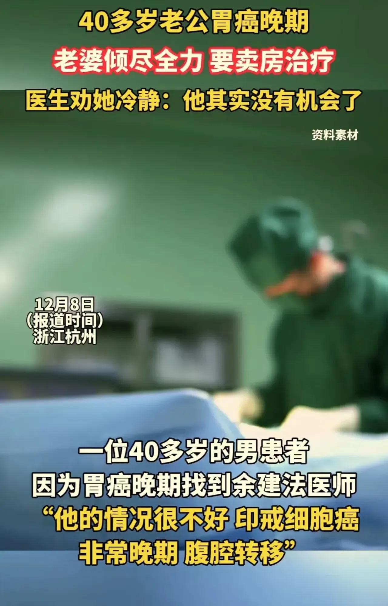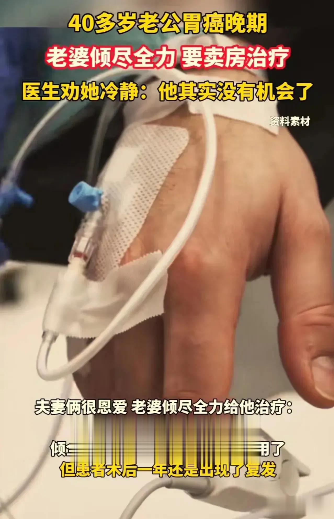 【卖房救夫】 面对丈夫晚期胃癌,老婆发誓:卖房救夫。 却被医生劝阻:活着的人还是要好好活着,与其浪费钱,还不如留给自己和孩子! 这才是医者仁心,癌症后期就是再多的钱也是无能为力,与其浪费,还不如理智面对。