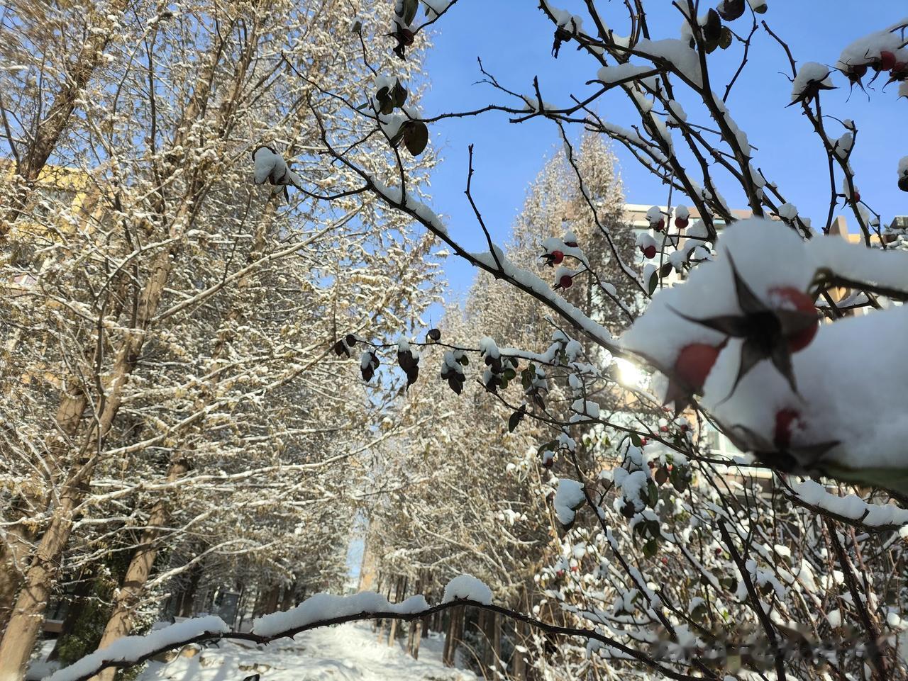 小区里的雪景,冬天就应该是这个样子![呲牙] #小区内雪景如画##小区赏雪景
