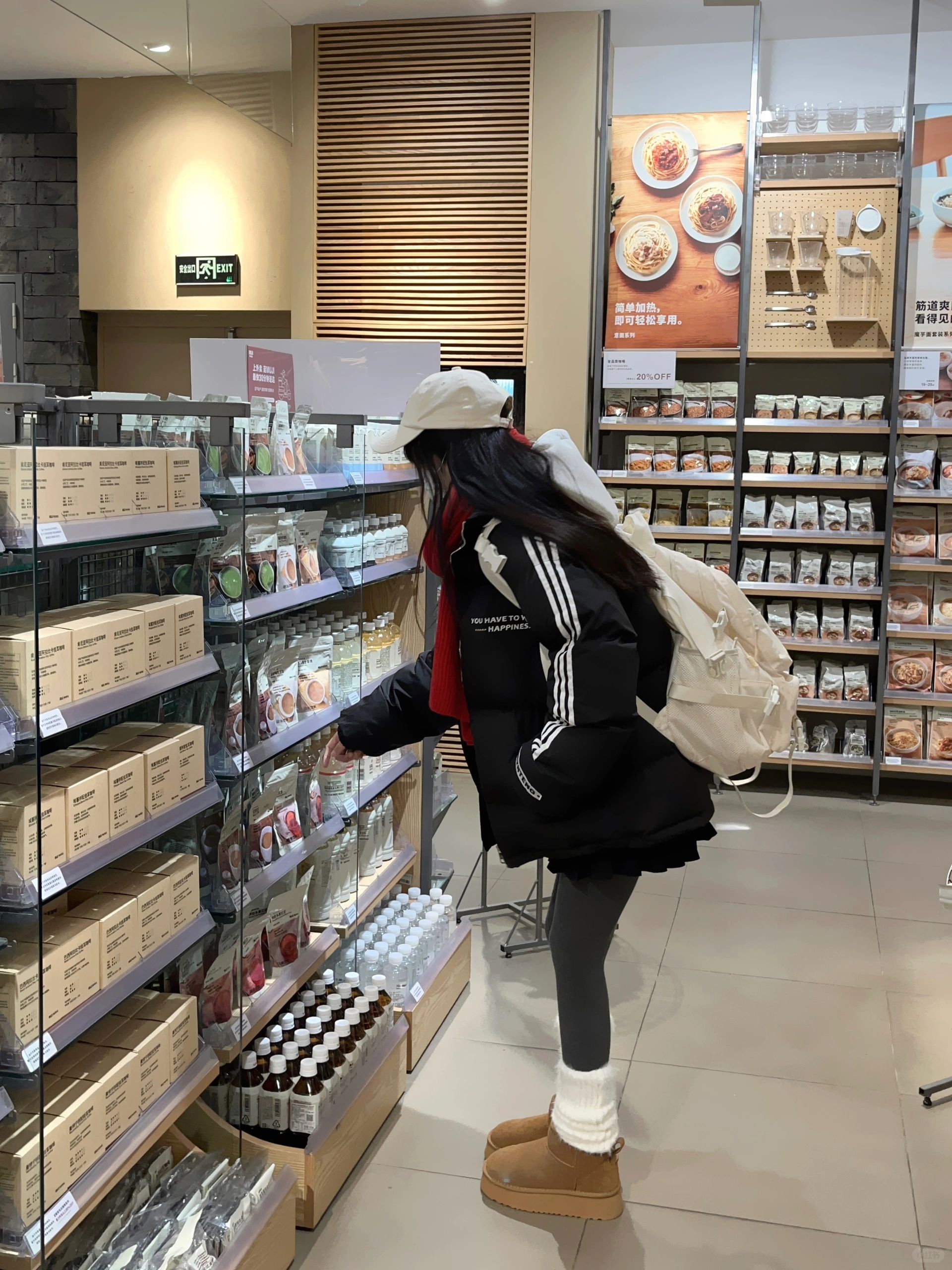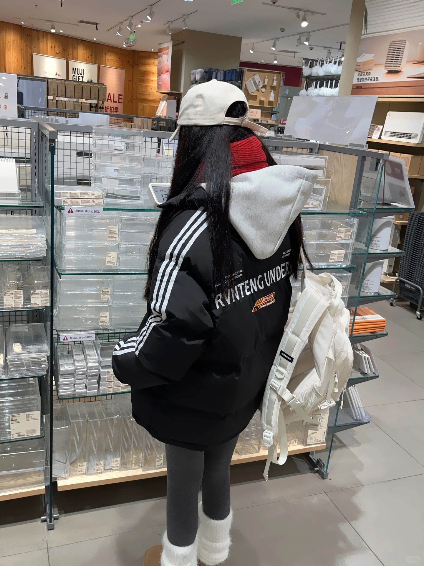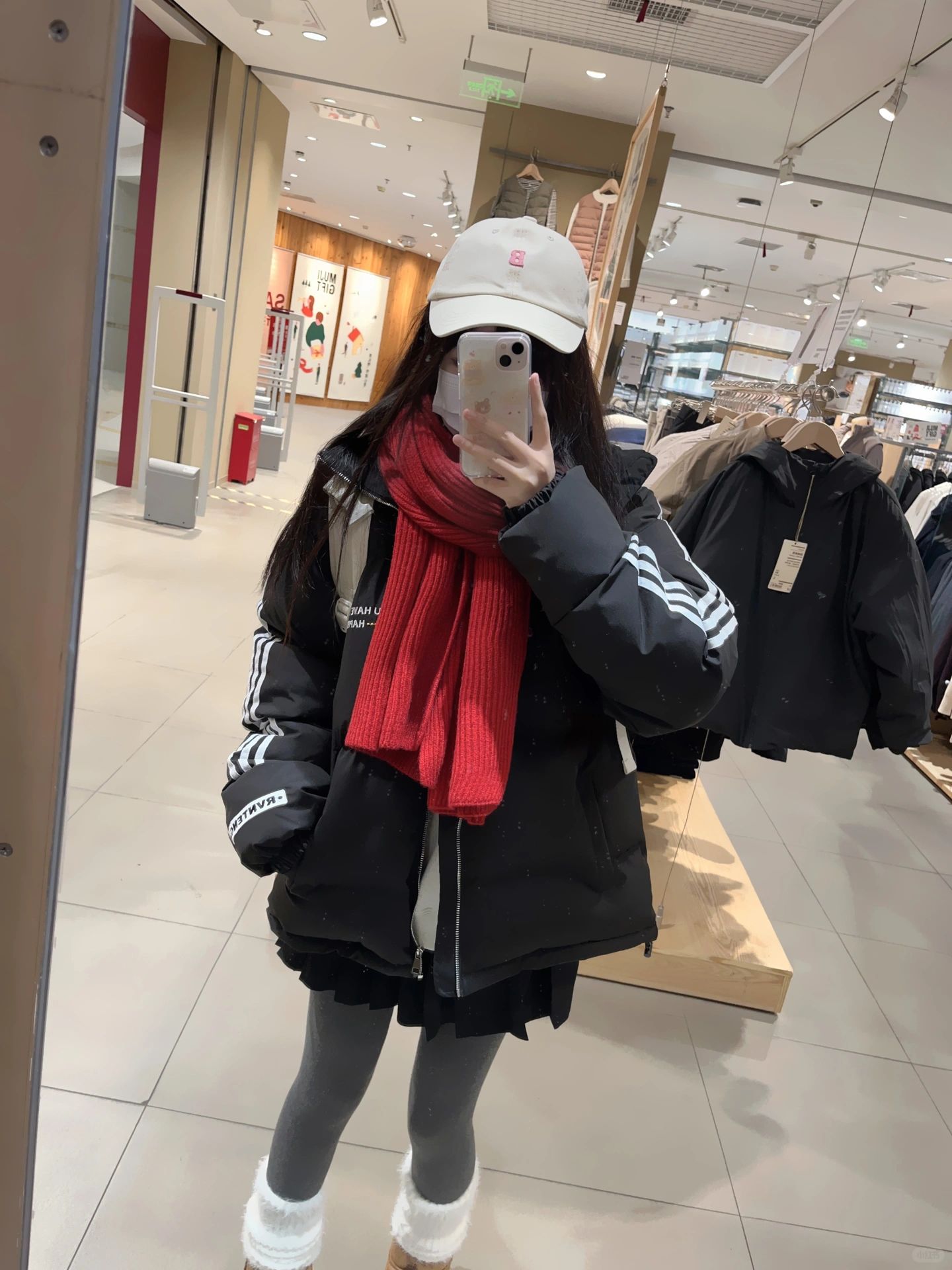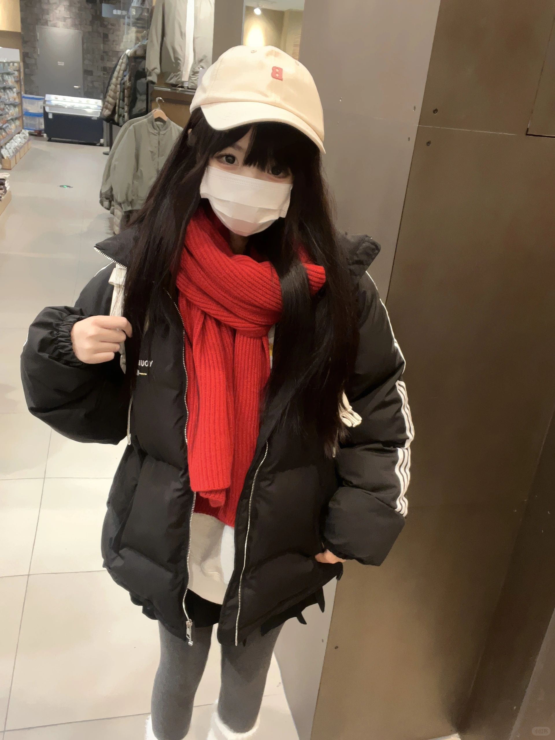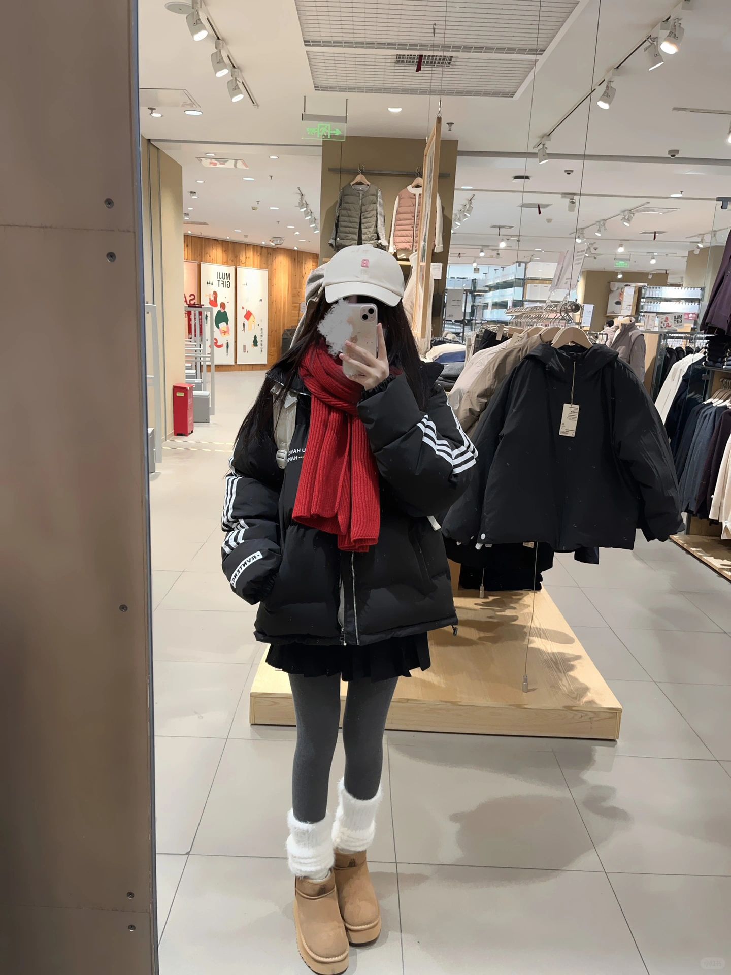 冬天就是要叠叠叠! 黑色棉服➕卫衣➕围巾也太韩妹了~