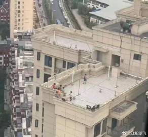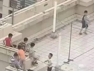 拍视频发到业主群,看看有着急的吗?总不至于楼顶再配个保安看孩子吧,这钱谁出?