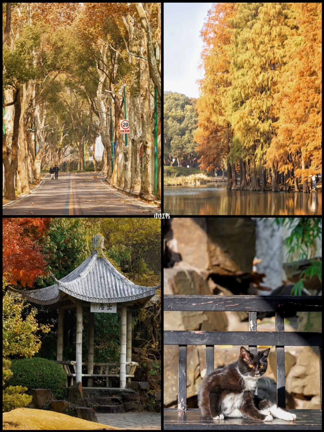 1️⃣建议从充山大门进去,一进去就能看到很多水杉,层林尽染,真的绝美!沿着水杉的小路走到马路上,还能看见一条梧桐大道