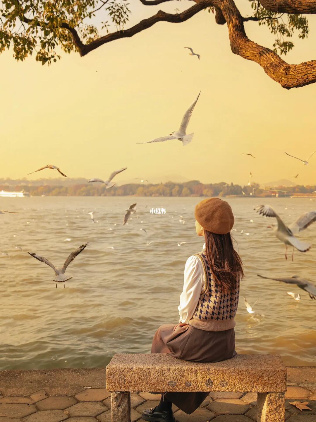 4️⃣在岸边等待的时候可以拍湖面上船来船往和海鸥,超绝!湖边有石凳,很贴心!也可以去旁边的咖啡厅坐坐