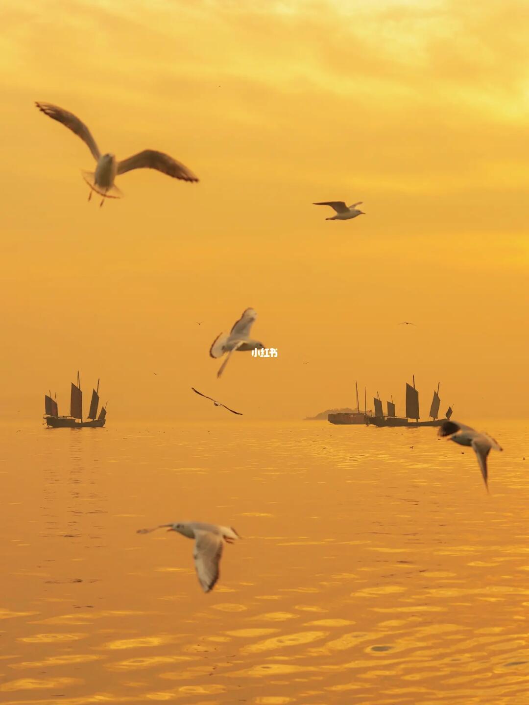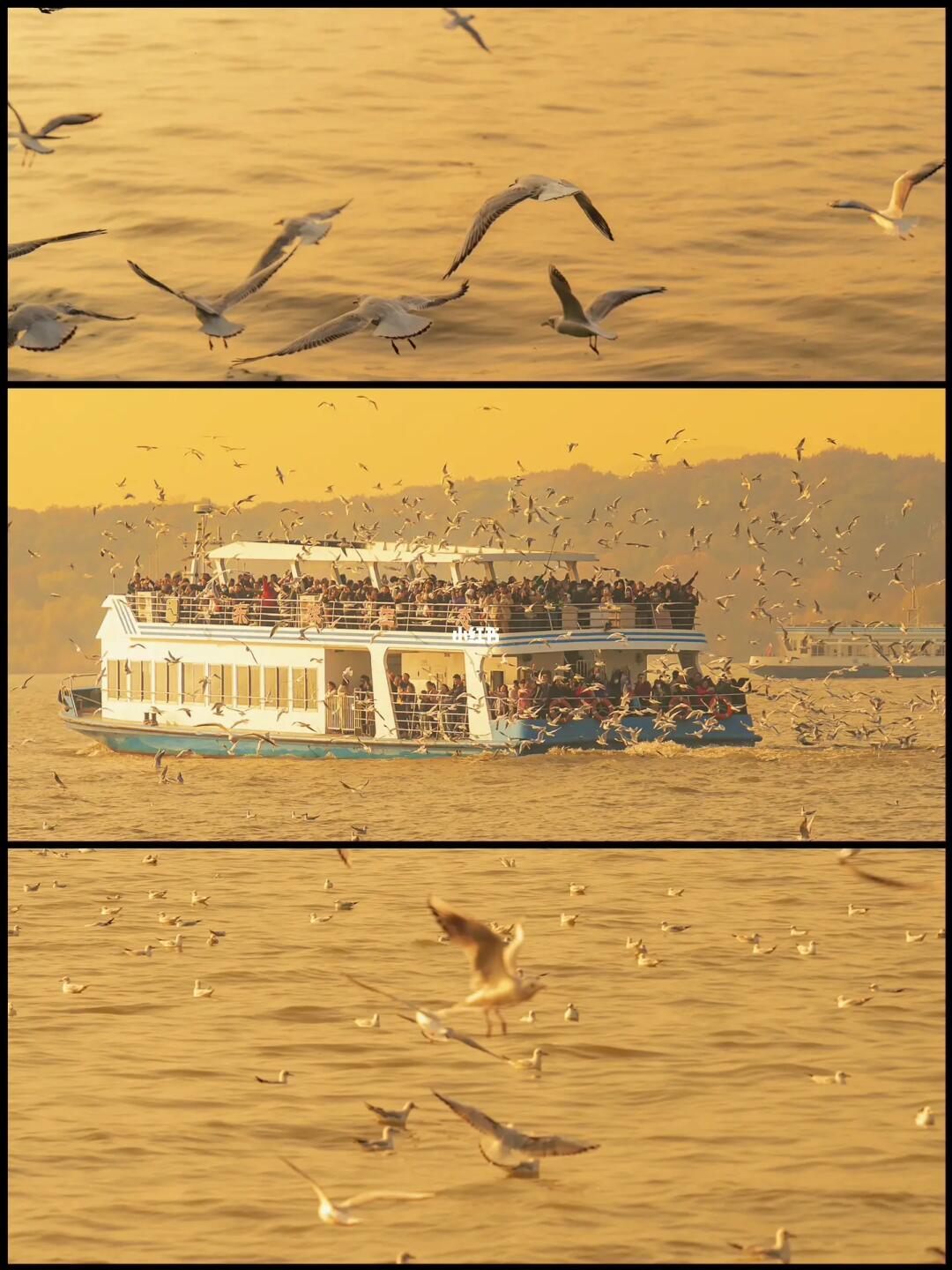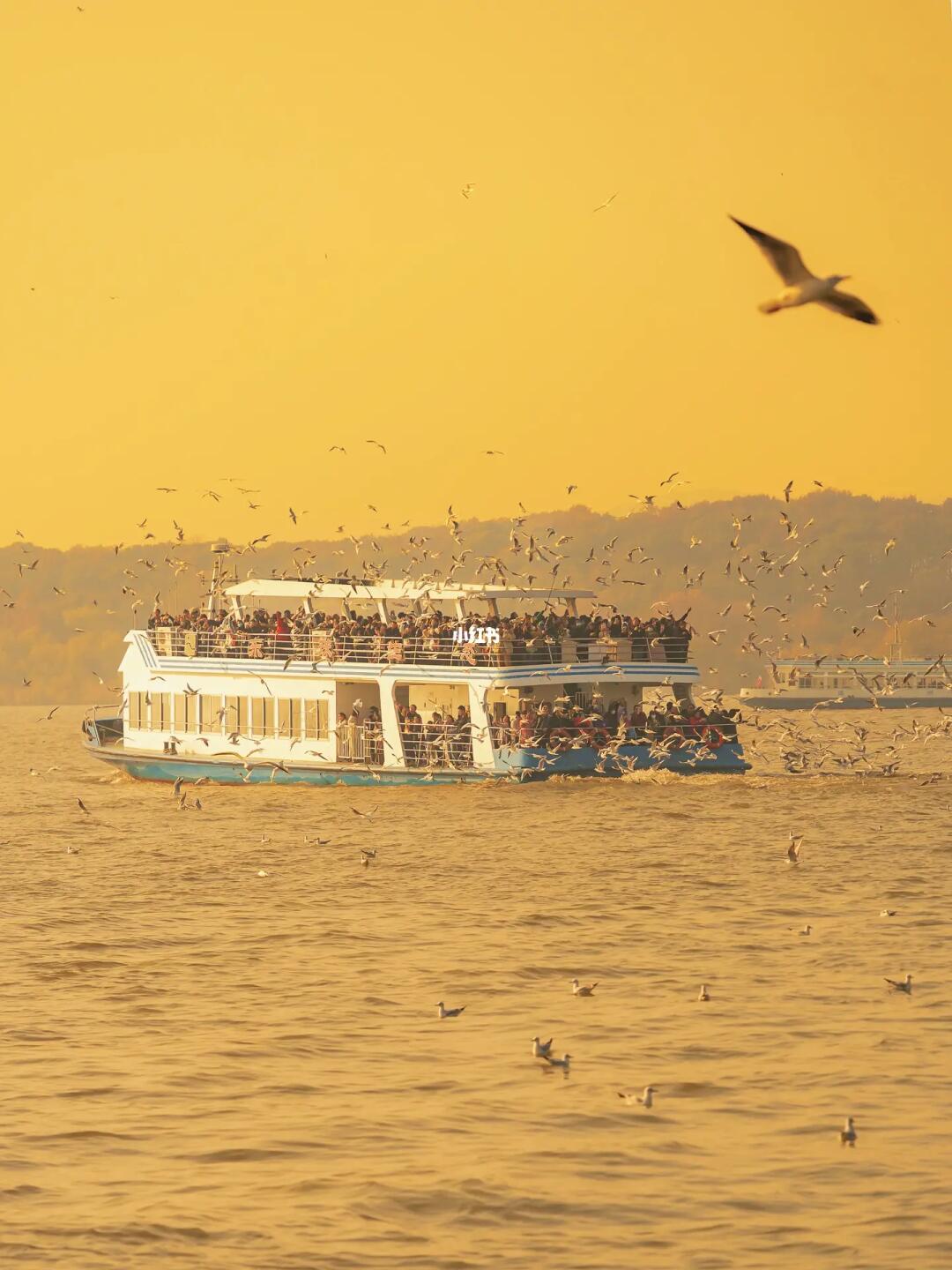 5️⃣上船直奔船尾,海鸥多,返程日落方向也是在船尾
