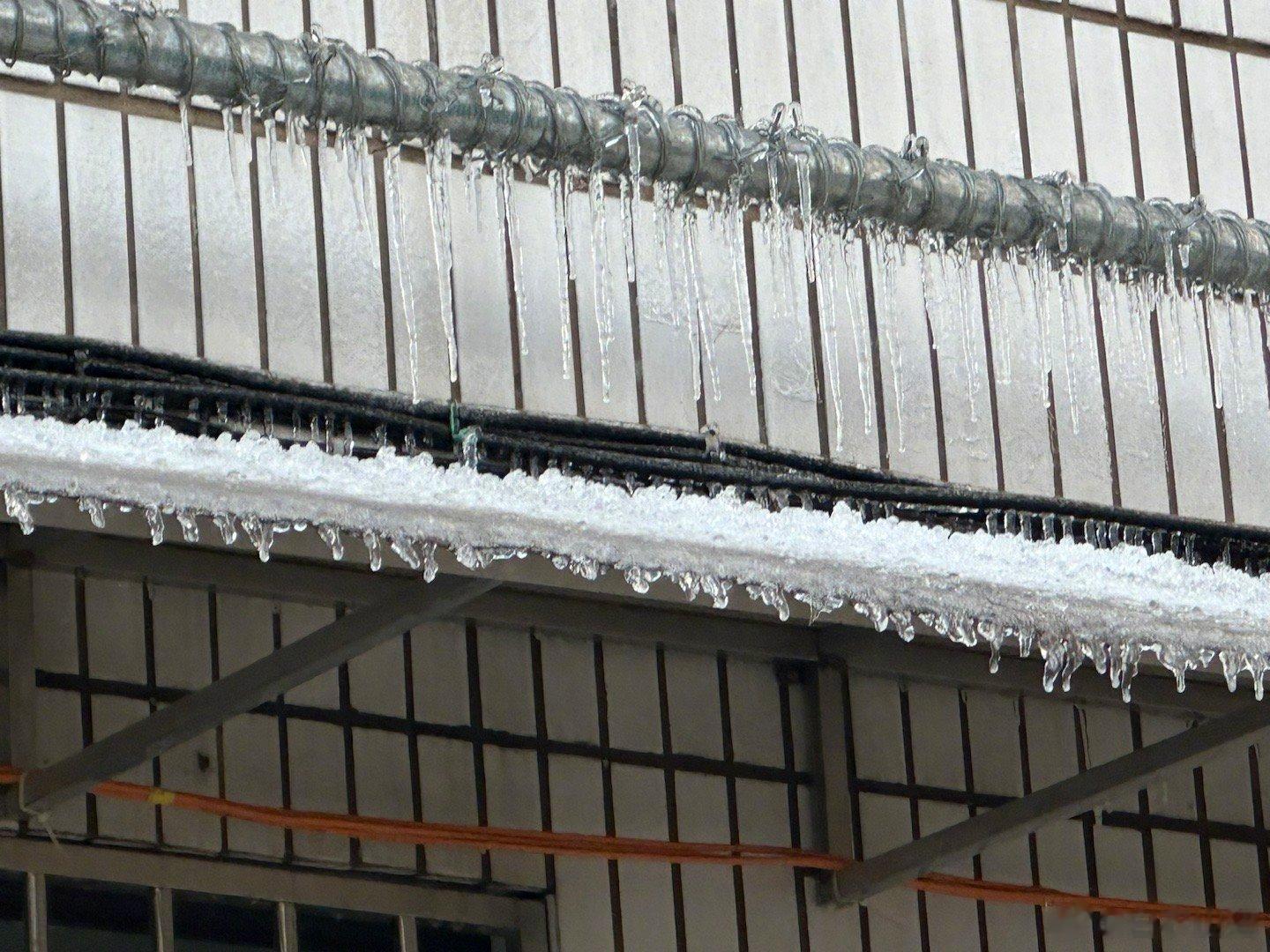 隔壁单元6楼住户的自来水入户管,是PPR材料的,在昨晚上冻裂了。从上到下,都是冰凌。这冰凌,已经好多年没有见到过了。