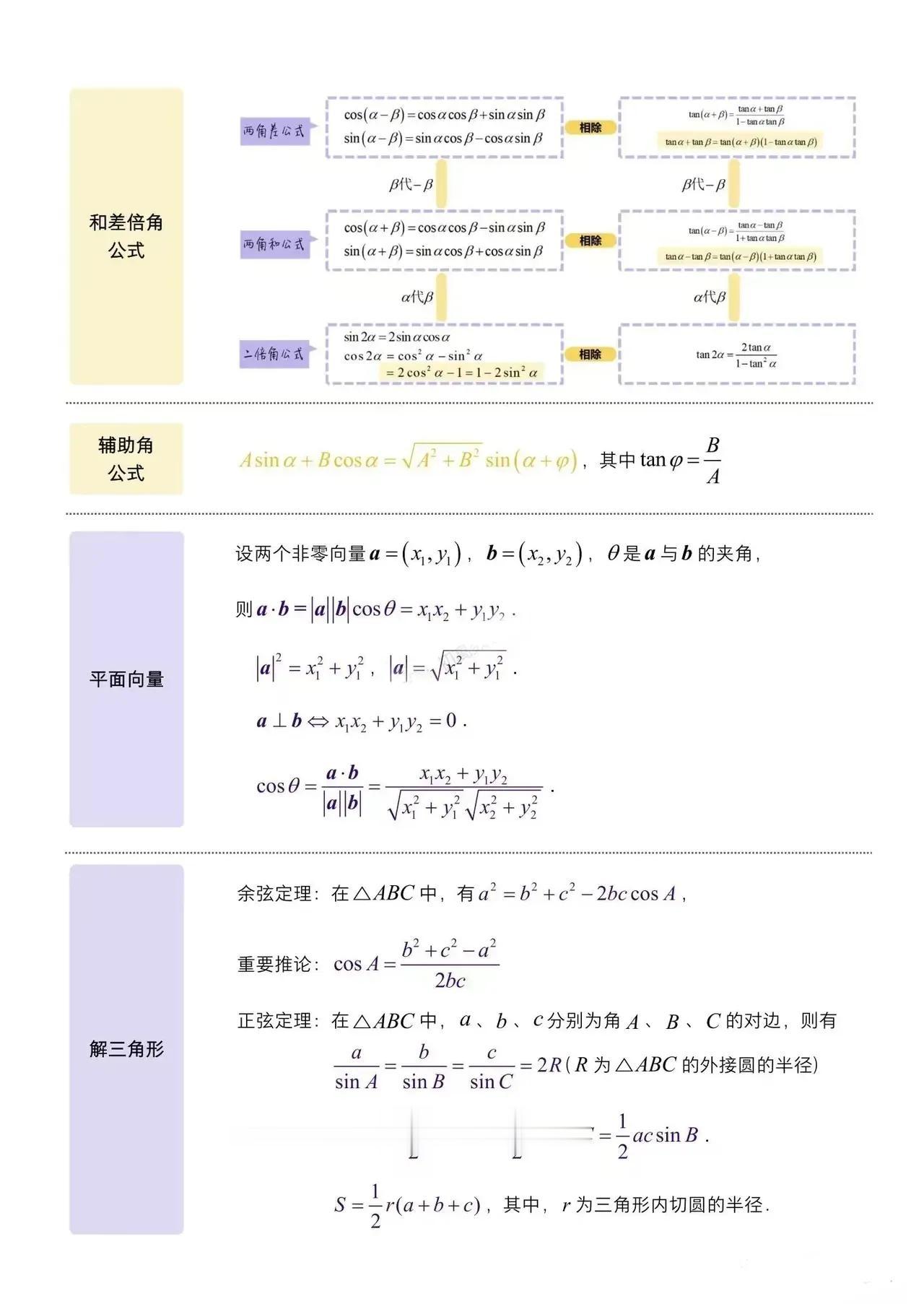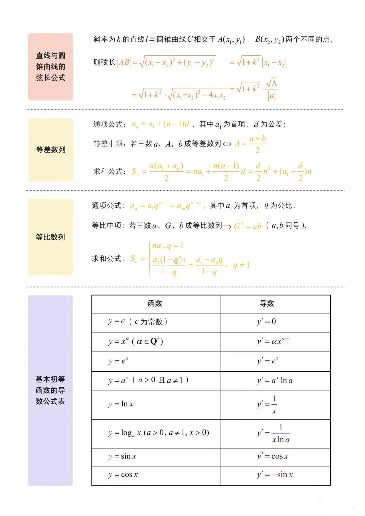 高考必会数学公式知识点