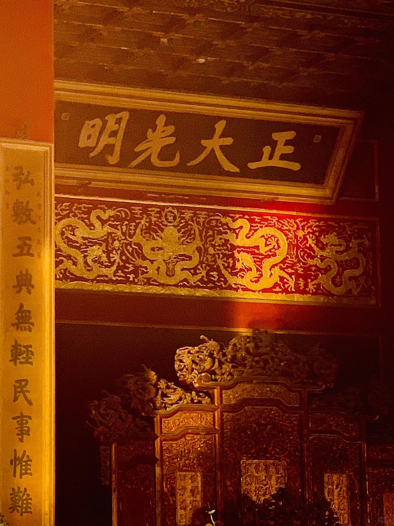 🍀每年冬至日前后的正午时分,故宫乾清宫大殿内就会出现一番奇景:大殿内的“正大光明”匾额及下方的五条金龙会由西向东依次被阳光照射点亮,发出金色的光芒。冬至日是古人极其重视的节气日,古代帝王会选择冬至日祭天,以表达“阴极阳生、万物生长”的祈愿。
