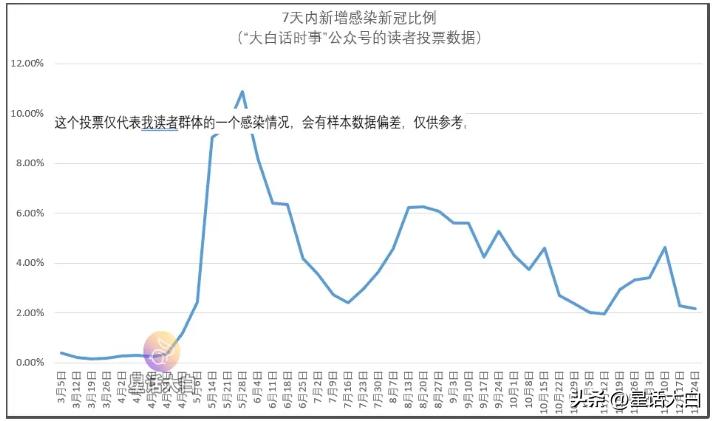 我每周日会发起“新冠感染情况”投票,统计我读者群体的新冠感染比例。 本文会来分析最新投票结果,同时也会聊聊某专家宣传免疫债和“主张不长期戴口罩”的事情。 截止12月25日的投票结果如下: 本周,7天新增感染比例为2.18%,跟上周基本持平,比起两周前仍然有较大降幅。 所以,在经历前两周一波上升后,最近两周数据又有所回落,这算是一个好消息。 另外,再来看北京疾控的数据。 2023年12月11日~2023年12月17日,北京全市共报告法定传染病18种52125例。 报告病例数居前5位的病种依次为:流行性感冒、新型冠状病毒感染。 从北京疾控数据看,上周北京的传染病例数也有较大下降,跟我读者数据是吻合的。 不过目前来说,北京的传染病例数仍然还是处于高位,是否会持续回落,还需要持续观察。