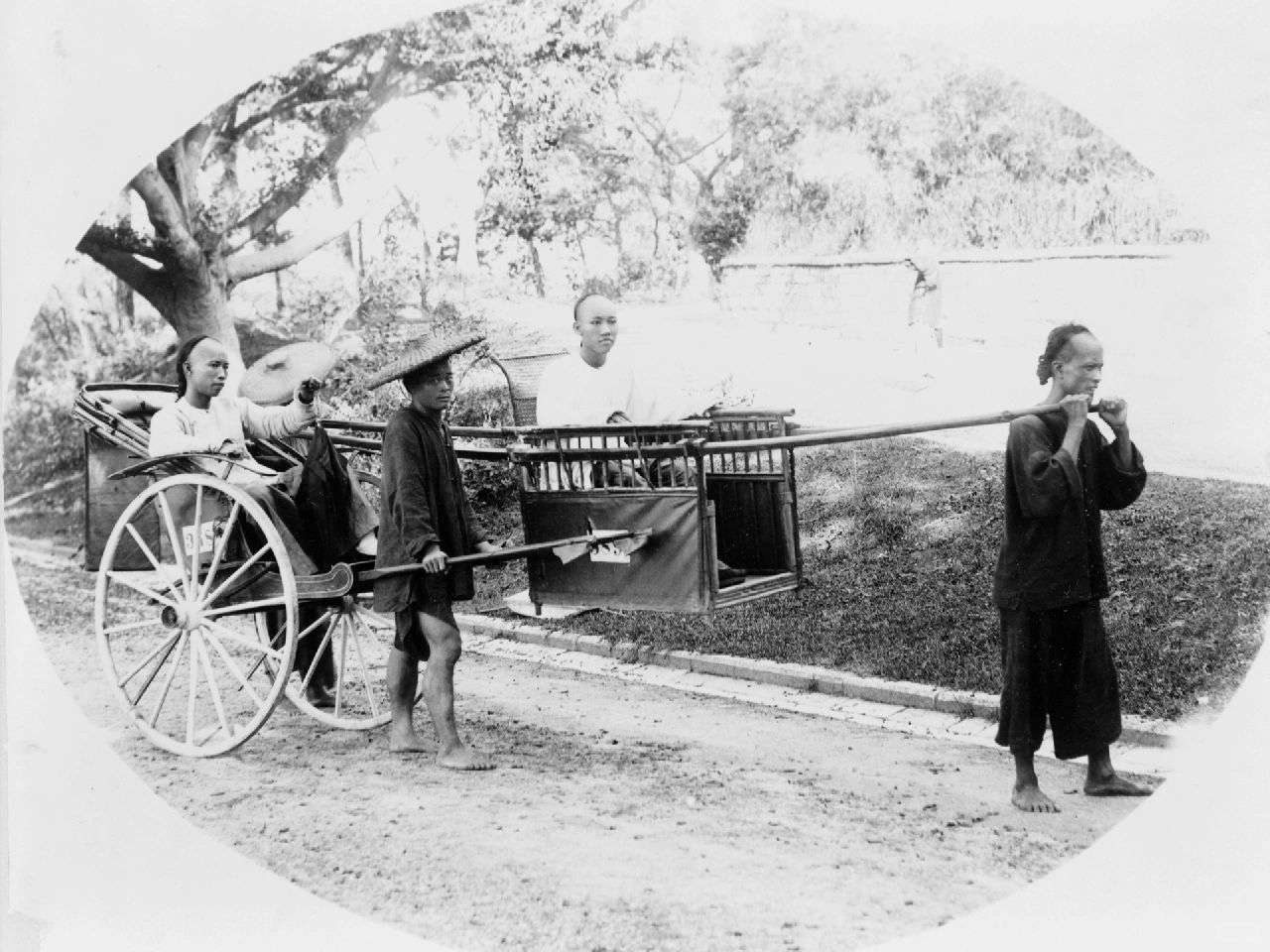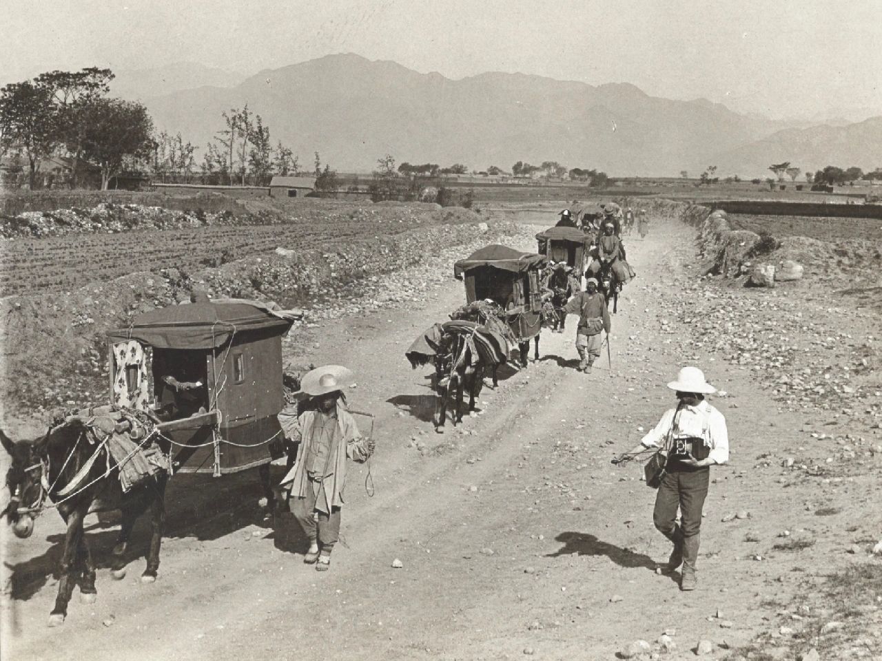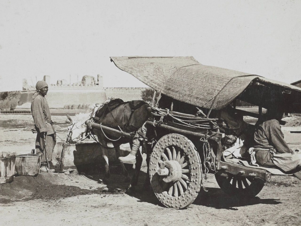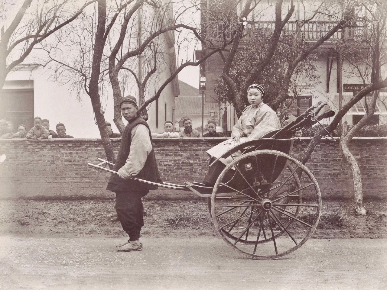 清末民初人们出行的交通工具,除了慈禧自个儿有奔驰汽车外,主要以人力牲畜参与的交通工具为主。达官显贵坐轿,商人们坐人力车,普通百姓出行大都腿腿儿着,或坐手推车、马车之类。老照片拍摄于1875-1920年间。