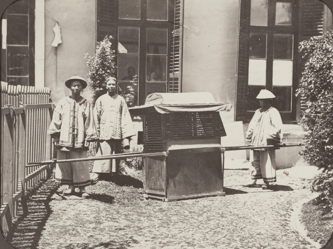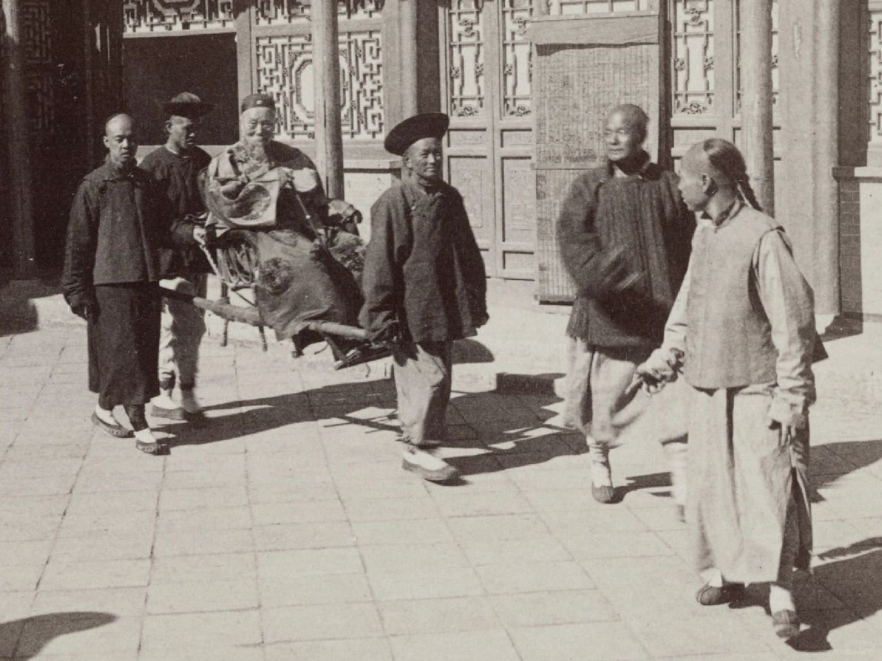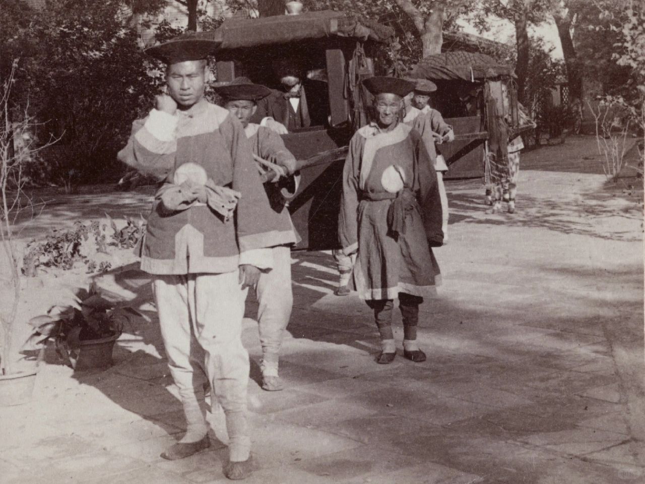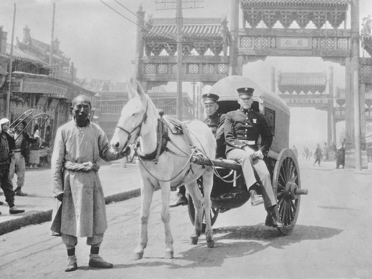 清末民初人们出行的交通工具,除了慈禧自个儿有奔驰汽车外,主要以人力牲畜参与的交通工具为主。达官显贵坐轿,商人们坐人力车,普通百姓出行大都腿腿儿着,或坐手推车、马车之类。老照片拍摄于1875-1920年间。