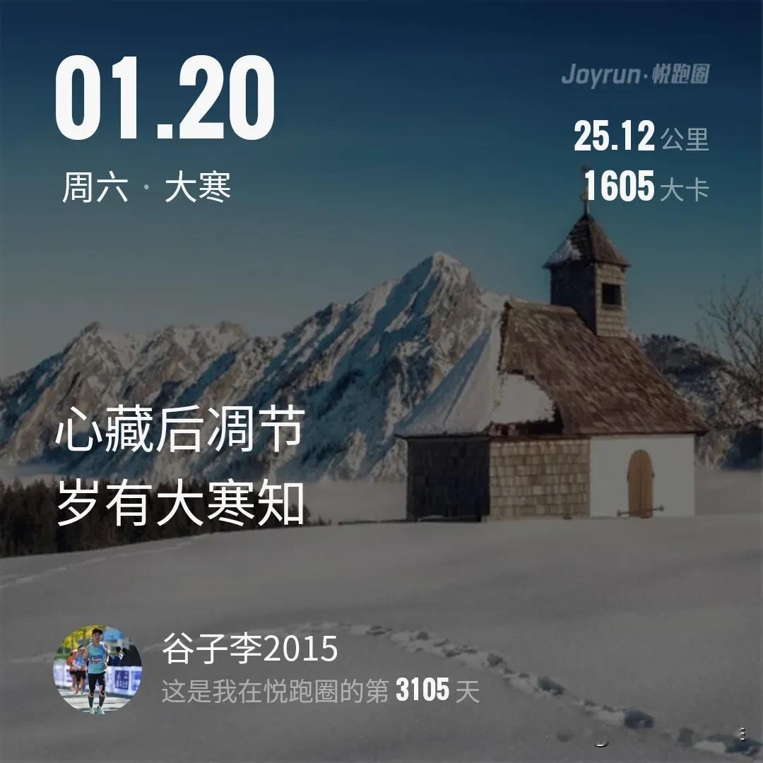 心藏后调节岁有大寒知 今天大寒 -6℃,确实挺冷的 打卡25公里,加油加油! #今天跑步了吗(小组)# #自律从冬跑开始# #分享跑步随想#