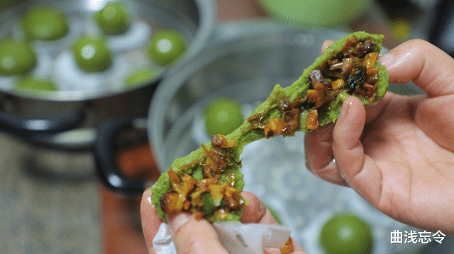 5.包的过程中,馅料与青团皮贴合严实,里面不要残留空气,避免蒸的时候破皮塌陷。