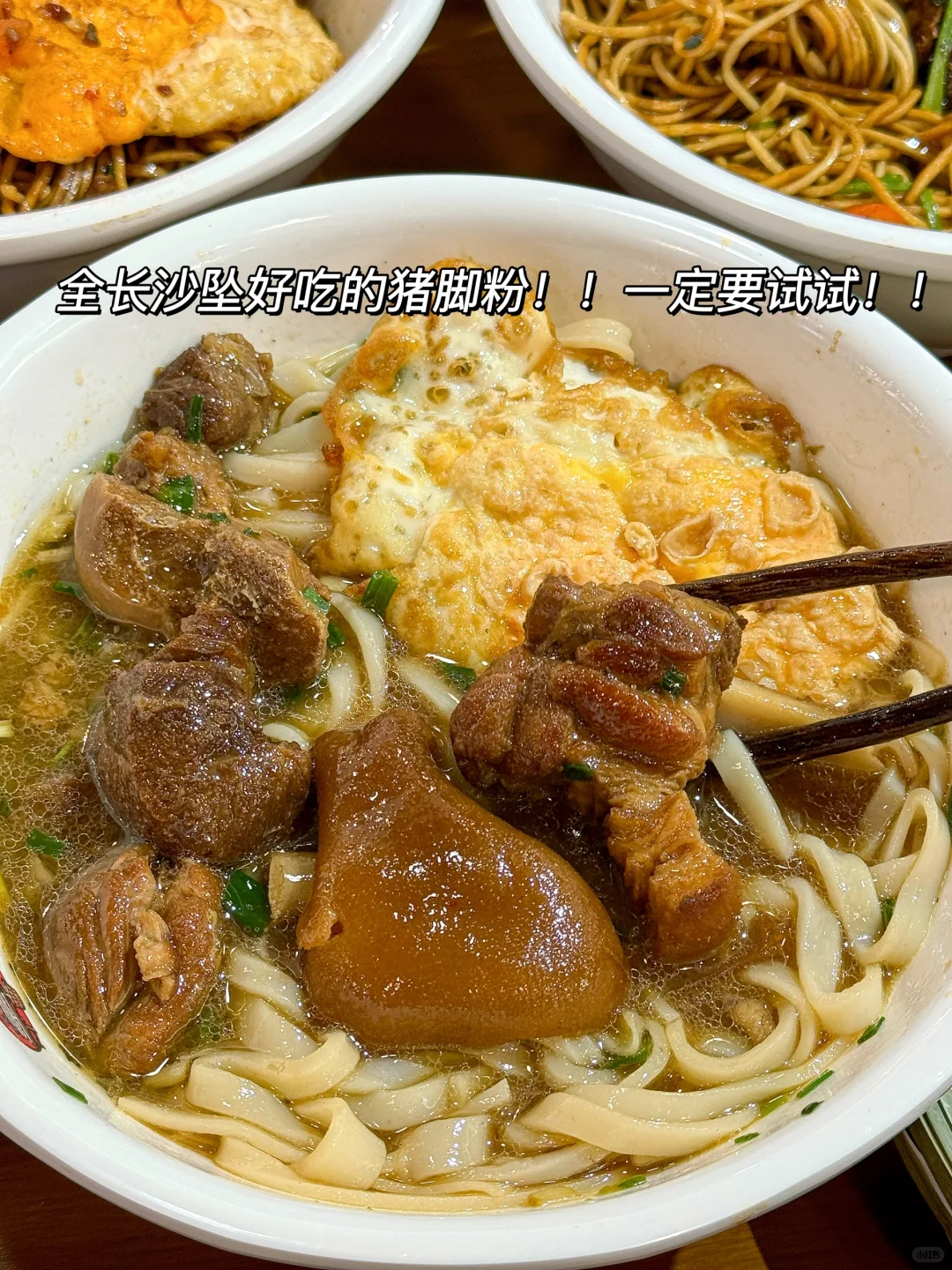 不愧是《舌尖上的中国》导演陈晓卿也去打卡的店!! 和朋友一周来这里吃了4、5次了,叫(和记粉馆)生意很好,早上都坐满了本地的嗲嗲娭毑,原汤肉丝才10r一碗!!一碗猪脚粉在长沙毫无对手的那种,巨巨巨好吃!! 码子有十多种!都是现炒的,老长沙经典特色、全部都好吃没有踩雷!!小料免费自取、肉给的扎实粉面都很满一大碗!!😭老板真的太良心了!! 整体服务都不错!干净卫生!!很舒服!我们去的河西新店!在茶子山…