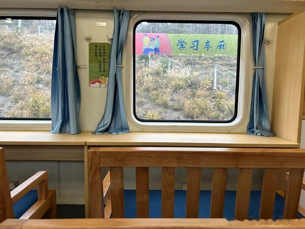 哇!这是一趟通往重庆北站的读书车厢!太酷了!