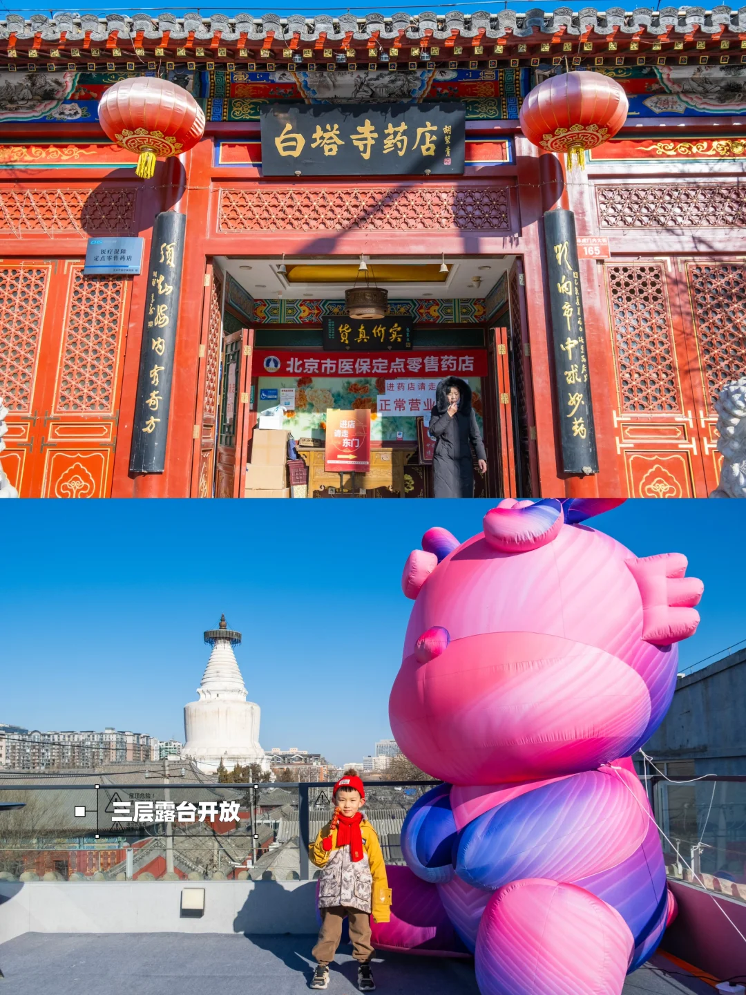 📍白塔寺药店:三层露台可拍照,有粉色的充气龙很可爱,无需消费