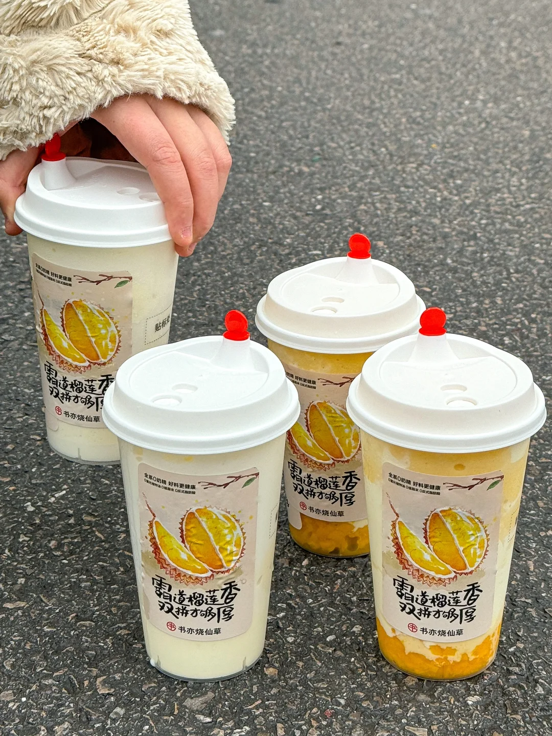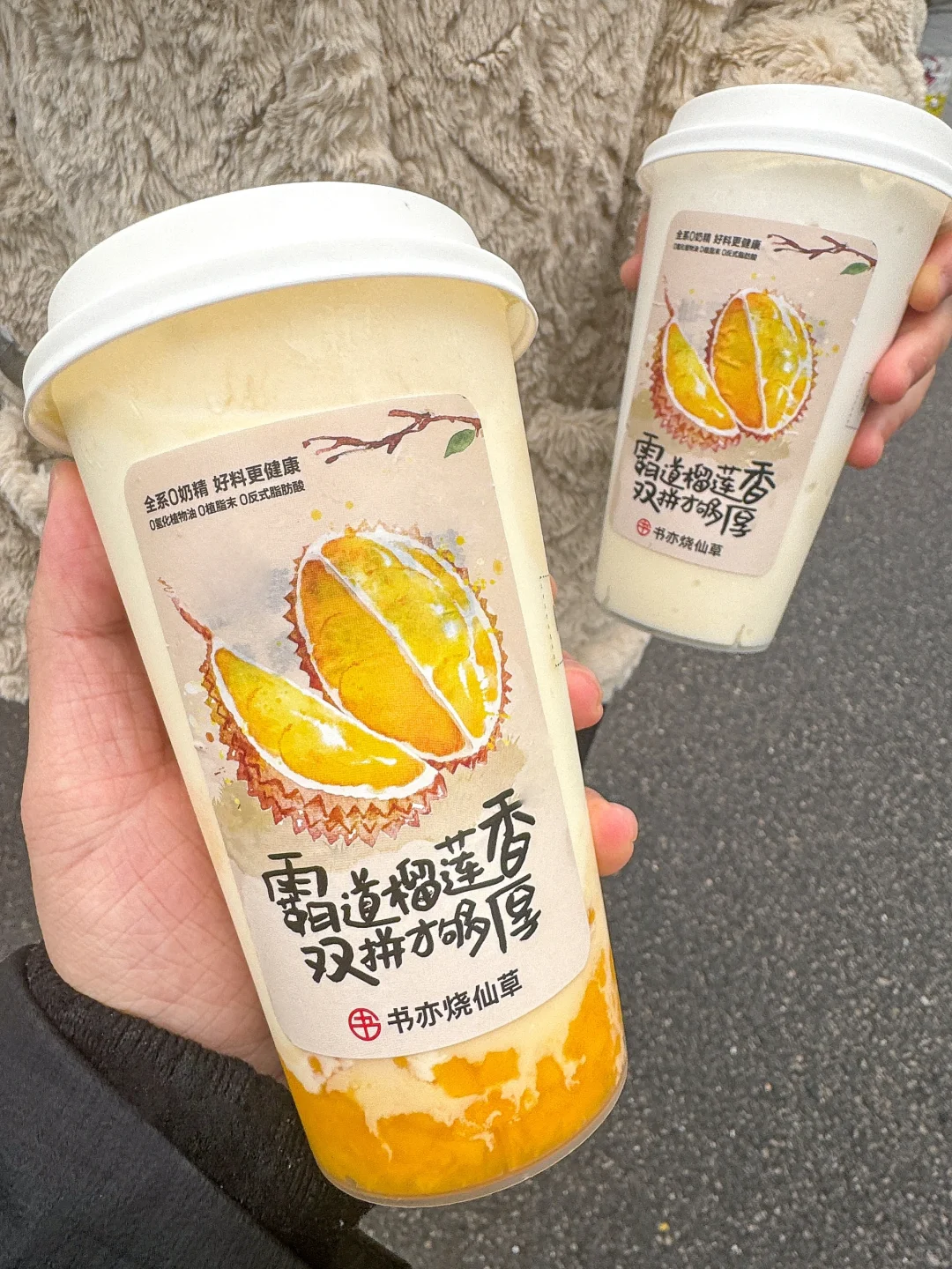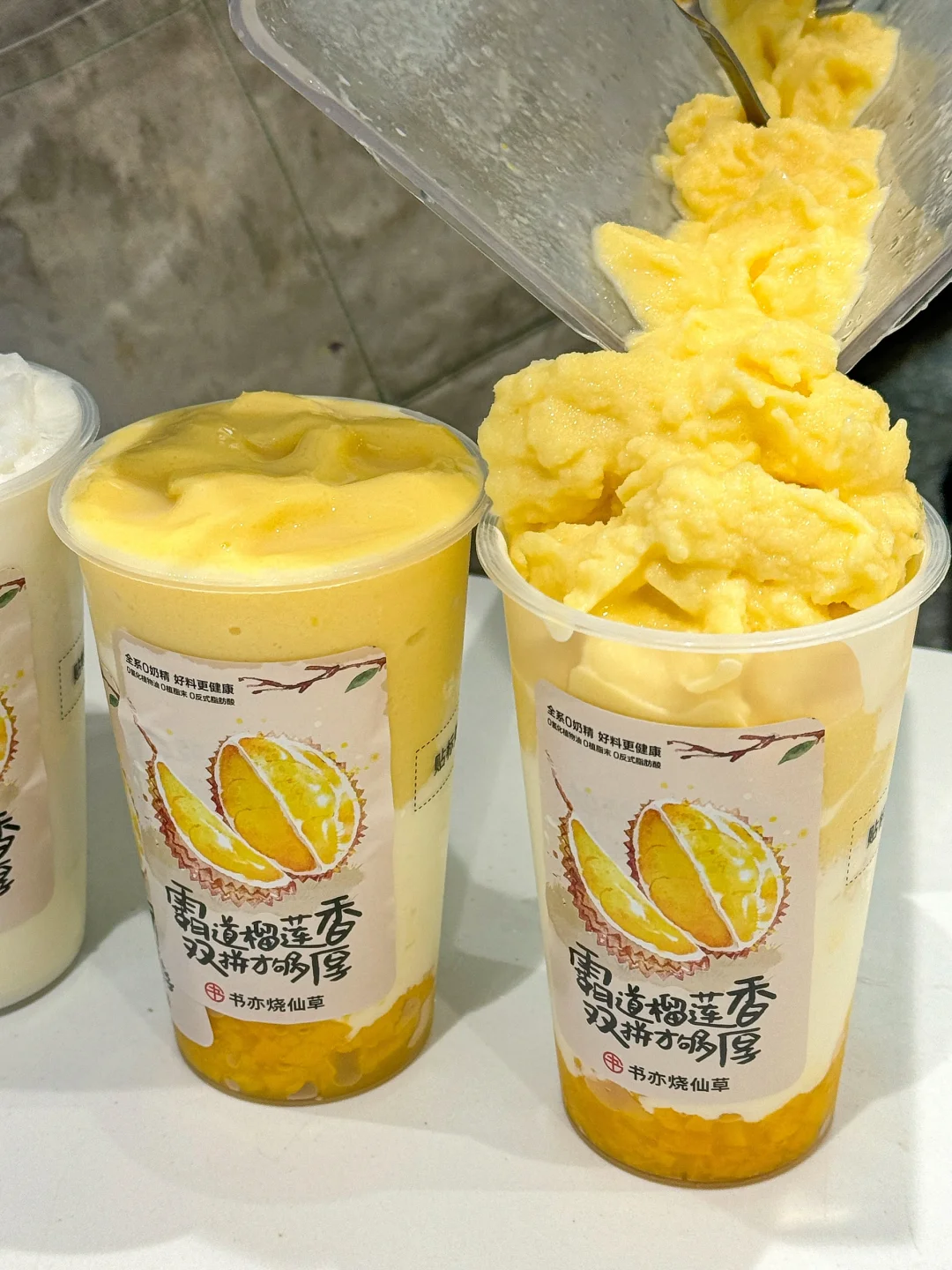 感谢网友推荐!!太!好!喝!了! 这两杯真的是近期喝过最好喝的榴莲奶茶了! 搭配了新鲜水果!!完全不会失望…味道真的hinhinhin好喝。 答应我研发出来了就不要下架了好吗! 🟡榴莲芒芒生椰:生椰乳+榴莲+芒果果肉…浓郁的榴莲味、生椰的清甜碰撞交融在口腔里!太好喝了!果味浓郁…每一口都能吸到果肉,姐妹们👭一定要try try! 🟡榴莲生椰麻薯:麻薯用料太扎实了!,绵密又细腻,一口下去幸福晕了!喜欢糯唧唧口感的姐妹们冲这杯!!