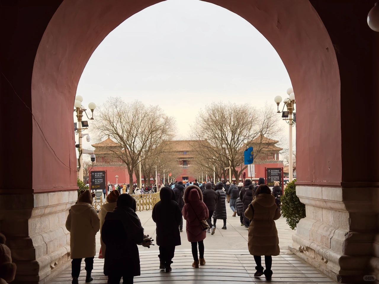 🍀图2、2024年冬,游客们从端门走向午门参观游览。两相比较,现在的故宫热闹非凡,各种指示牌、栏杆、华灯、树木、汽车、游览设施等点缀其中。