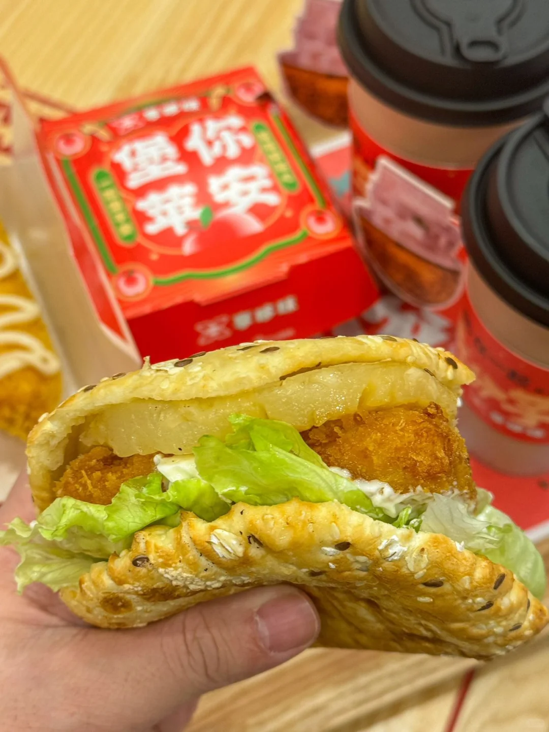龙年的第一个汉堡🍔流心芝士虾排堡,我愿意给满分!!而且点套餐还送了🎋许愿签!!好有仪式感,祈祷自己在新的一年狂吃不胖啦!!透明厨房,每个汉堡都是手擀全麦堡胚,口感柔韧有嚼劲!杂粮坚果烘烤的香味加浓浓奶香~口味也特别多:北京烤鸭 板烧凤梨 多汁牛肉 培根煎蛋等等都好好吃🤤…