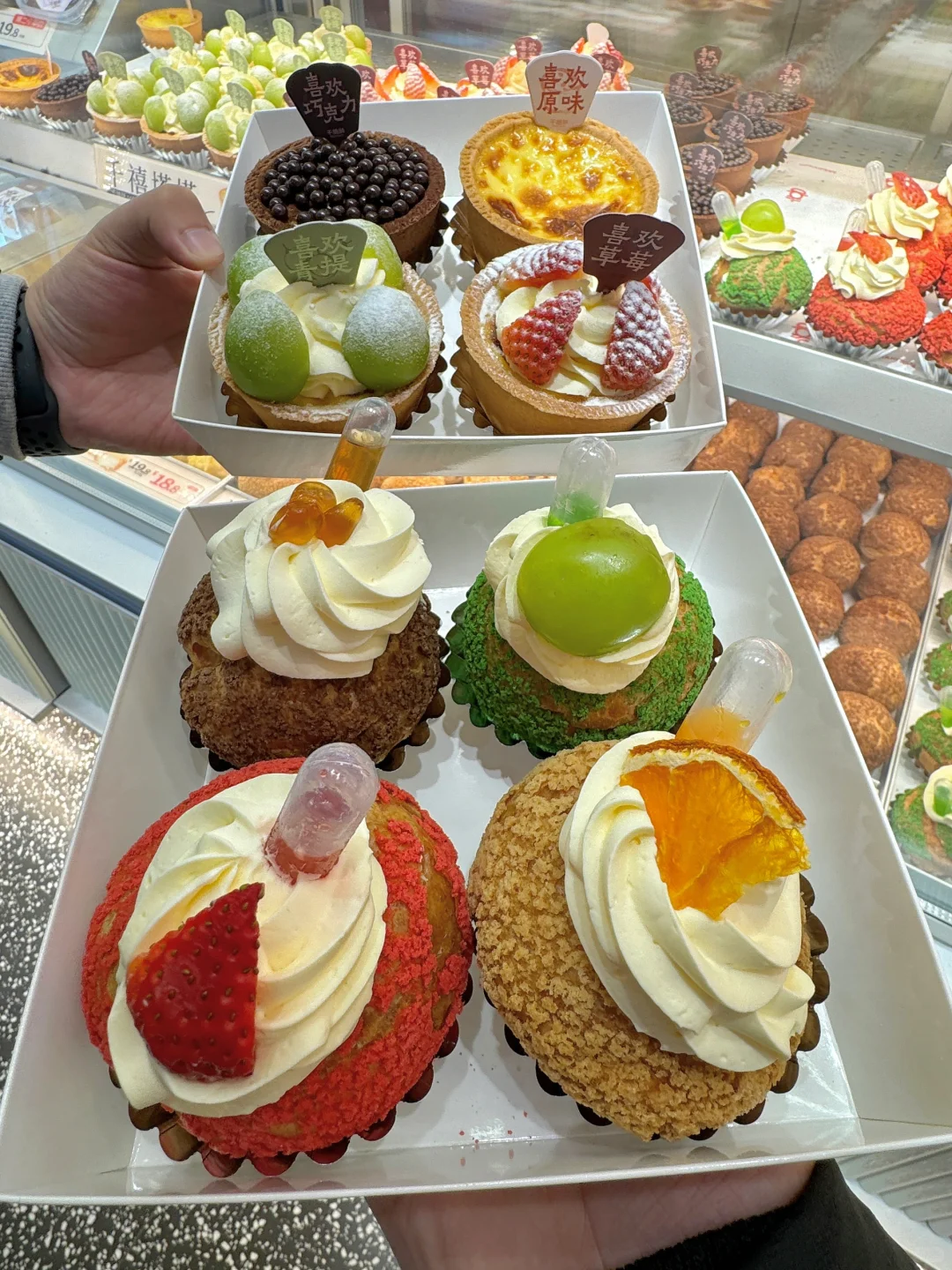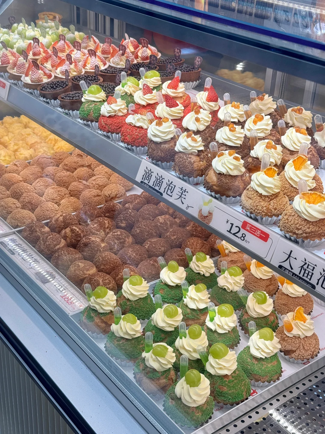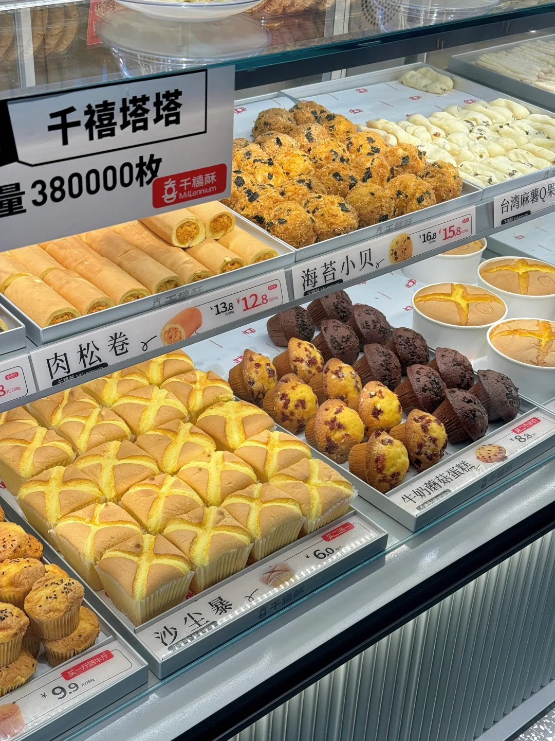 大福泡芙、巧克力塔塔、原味塔塔、滴滴泡芙、海苔小贝、肉松卷、血糯米盒子蛋糕!!每一款都亲测好吃🥹🥹 感谢长沙网友的推荐…这家藏在五一广场7mall的糕点店【千禧酥】种类好丰富啊,创新口味独特,人均才二三十、而且近距离看得到师傅在里面现烤现做,用的都是动物奶油,每一款都颜值好高,哪个甜品脑袋能拒绝啊啊啊!都想打包带走!!