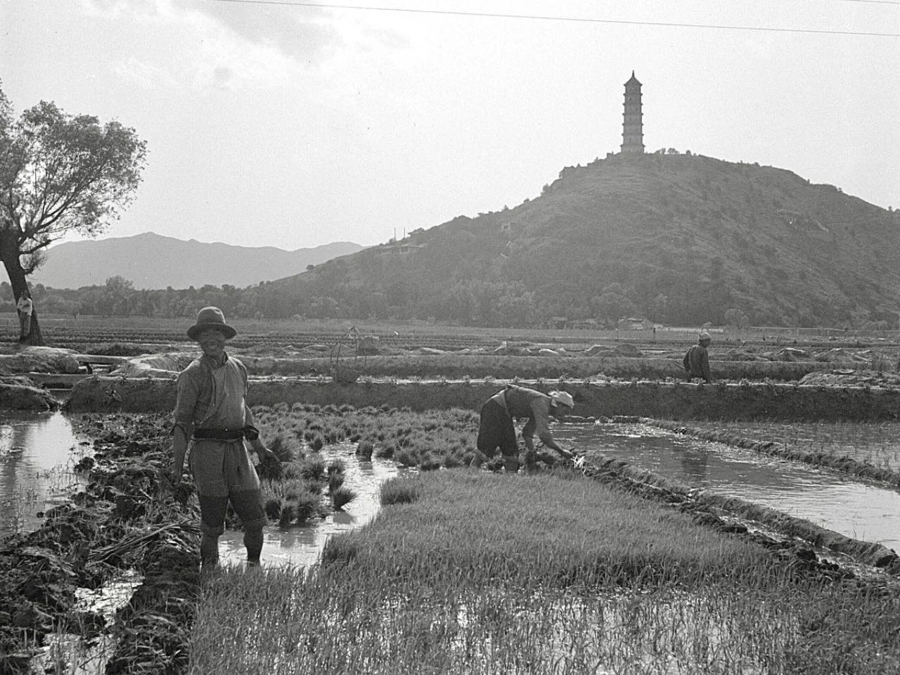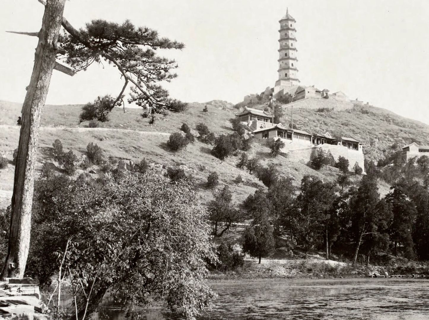 🍀图11、12、13、14、15,玉泉山俯瞰万亩稻田、“湖山罨画”石牌坊和玉峰塔旧影,分别由麦克斯韦尔、甘博、山本讃七郎、莫里逊·海德等人拍摄于1875年、1900年、1908年、1924年和1933年间。